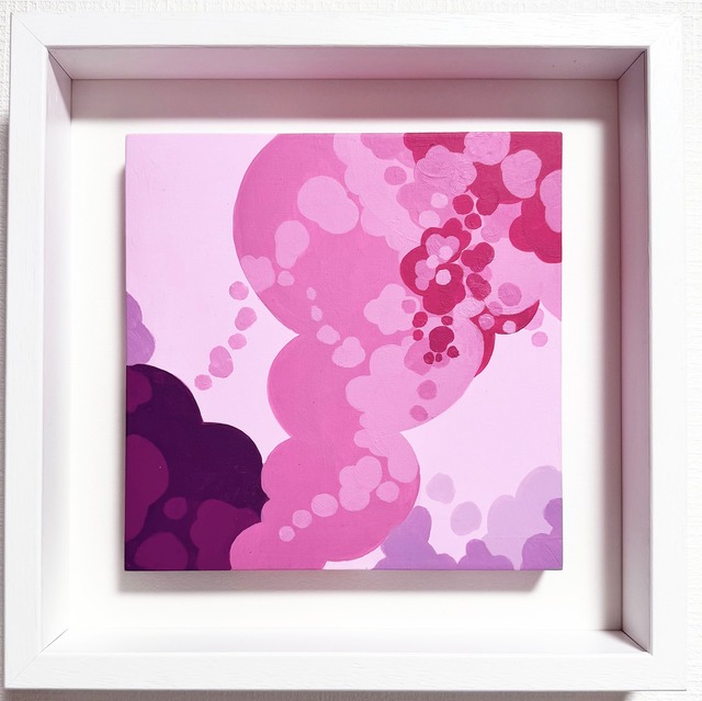Breath=呼吸を描いたシリーズの6作目です。酸素だったり二酸化炭素だったり、血液だったり、ミトコンドリアがいたり、様々な工程をイメージしながら、黙々とマルをたくさん描き重ねています。絵を描くときに淡いピンクを使いたくなるのは、体(体調)に意識が向いている表れだと言われています。そうかもしれません。S0号の小さいスクエア、可愛いですよね。パネル側面の描画も楽しんでいただけるよう、白いBOX額にセットしてみました。 メディア:木製パネル、ミクストメディア サイズ:タテ18cm ヨコ18cm 厚さ 2.0cm(額27cm×27cm×4.5cm) 石倉かよこ先生 公式ウェブサイト:http://www.kayokoishikura.com/ インスタグラム:http://www.instagram.com/kayoko.ishikura/ 【重要】本作品は12/6の午後以降に広野中央体育館の会場での手渡し、または12/7以降に着払いでの発送となります。