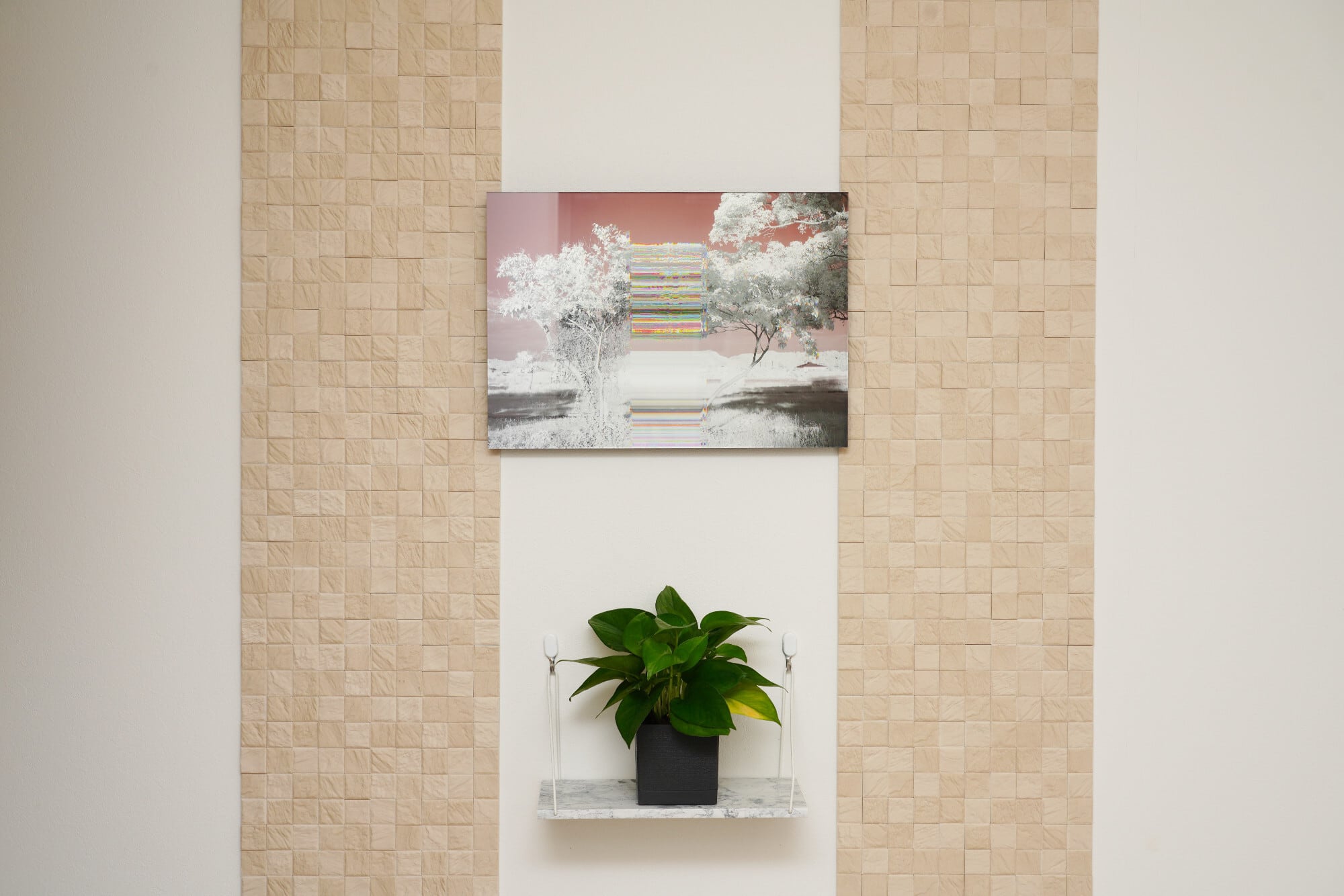 本作品は自作したカメラで撮影しています。本カメラは、わずかな変化が欠落やずれとして記録され、存在の不確かさが像の中に浮かび上がります。