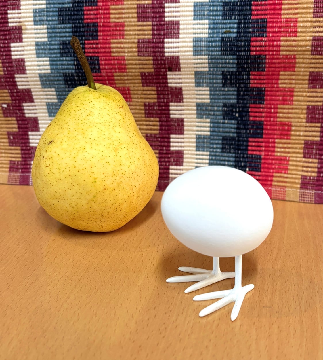 「インスタレーション用に制作した立体作品。始まりと可能性を鳥になぞらえたキャラクターです。会場では約140体での展開を想定していますが、展示用とは別に60体( エディションナンバー . サイン入 )を個別に限定販売します。」(田中直樹)