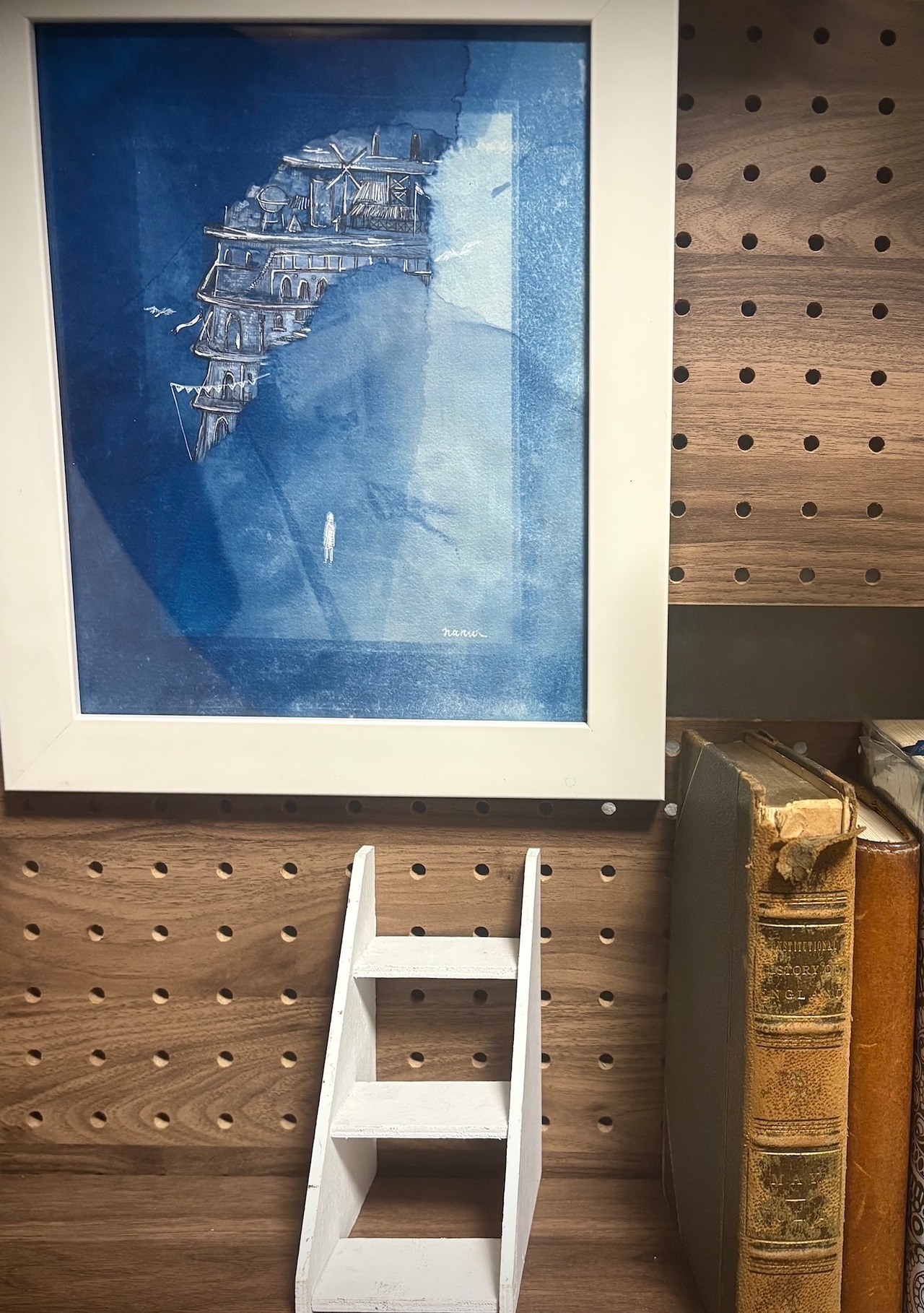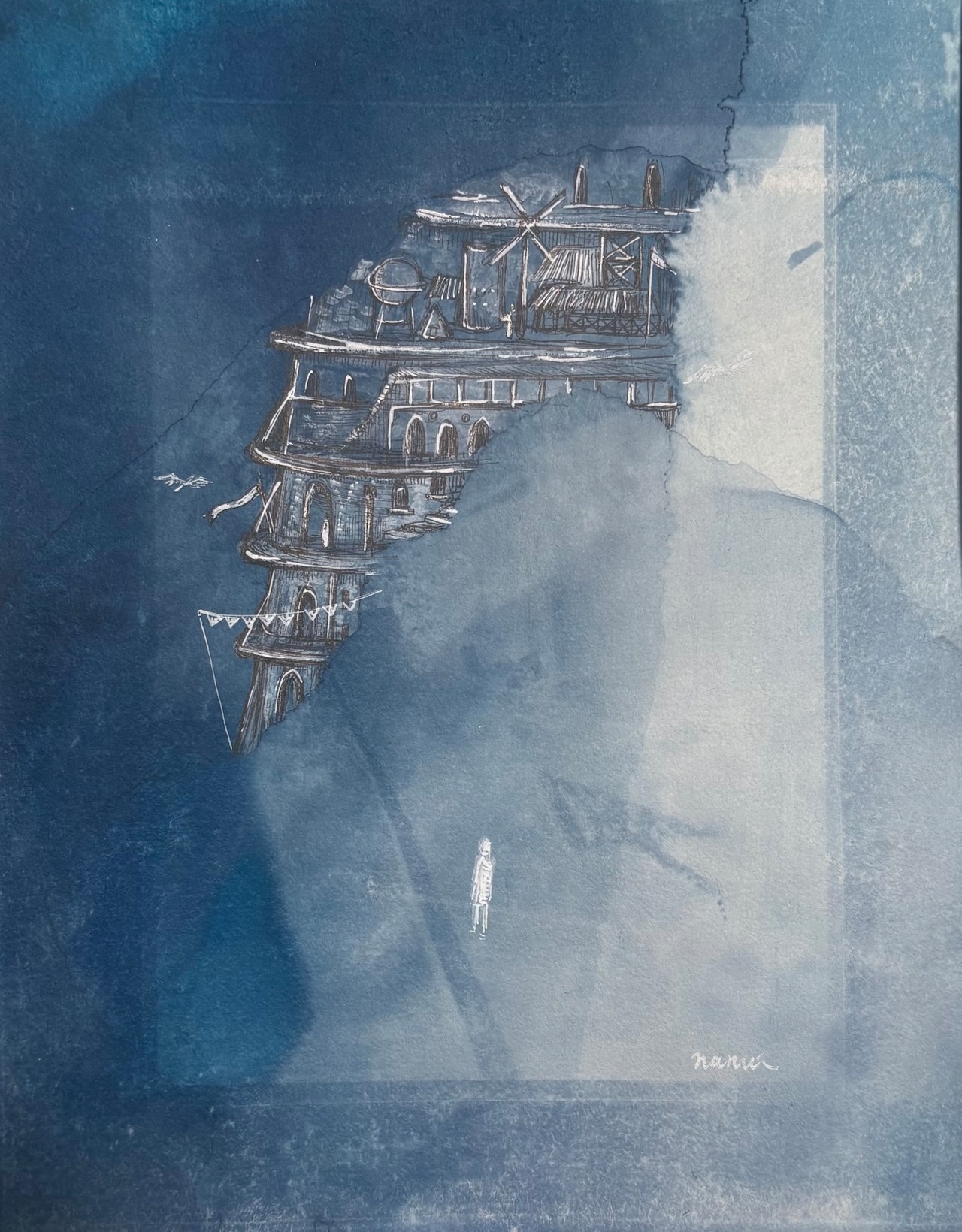 メディア:紙にサイアノタイプ、アクリル、ペン(Cyanotype, acrylic and pen on paper )