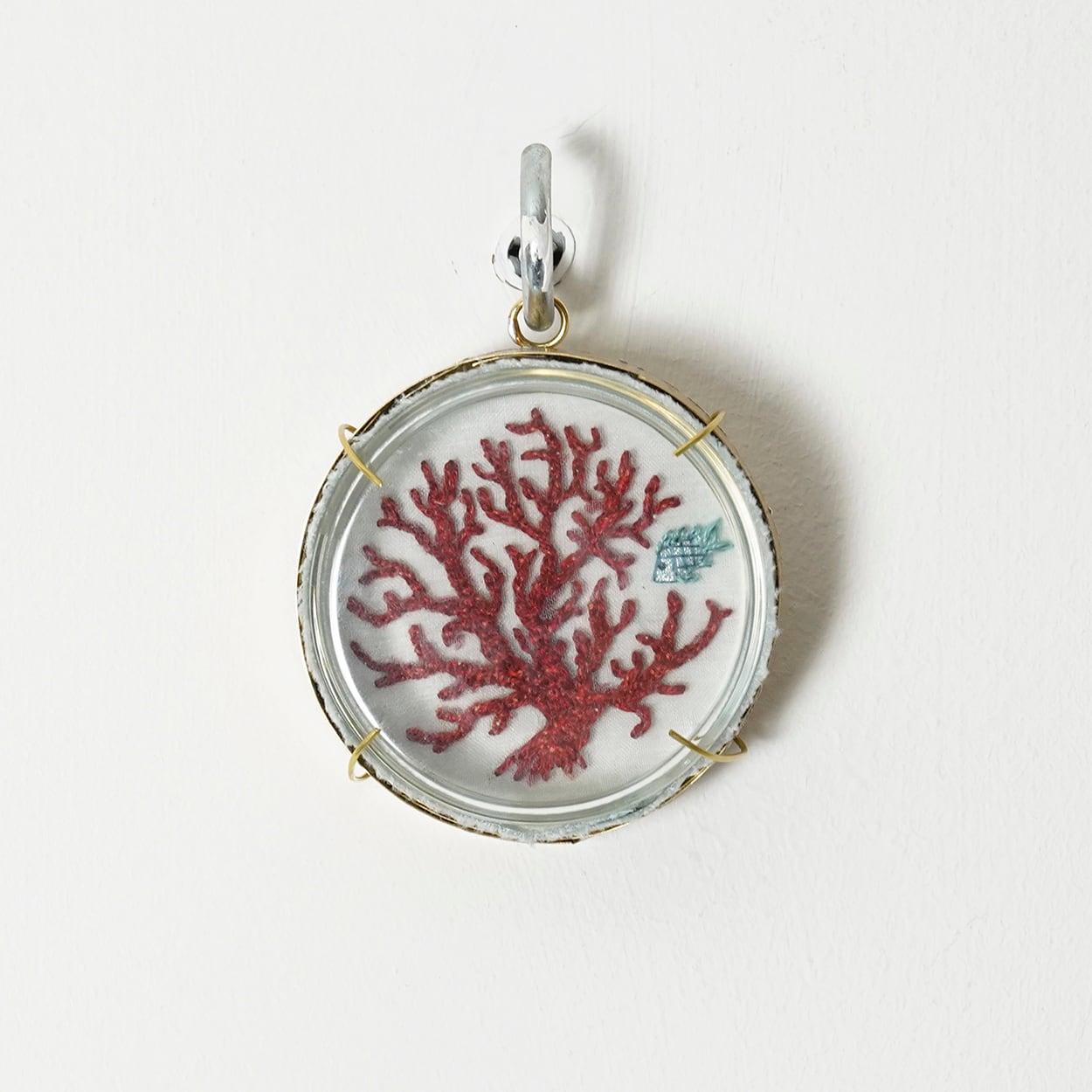 珊瑚礁は酸素を放出し生き物たちの住処になるため、また深い海にすむ赤珊瑚は血管のように見えるため、Ayaito Marronにとって全ての珊瑚は「生命」を象徴する生き物です。赤珊瑚をガラスのシャーレで作ったルリケールに入れました。