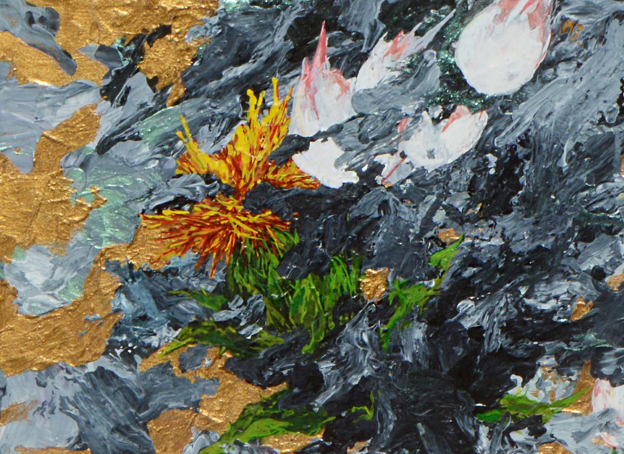 私は山形県で生まれ、山形県で育ちました。わが県を代表する河川が最上川で、「母なる川」と呼ばれています。江戸時代、最上川舟運によって山形と上方(大阪)がつながり、流域に文化と富をもたらしました。その象徴の1つが、この作品に描かれている紅花です。しかし最上川は同時に水害をもたらす存在でもあり、毎年のように氾濫を繰り返しています。先人は洪水のたびに土地を耕し直し、またそこに暮らしを築いてきました。