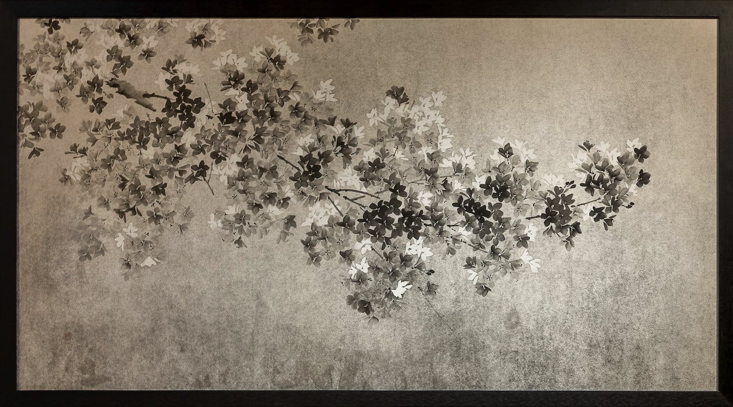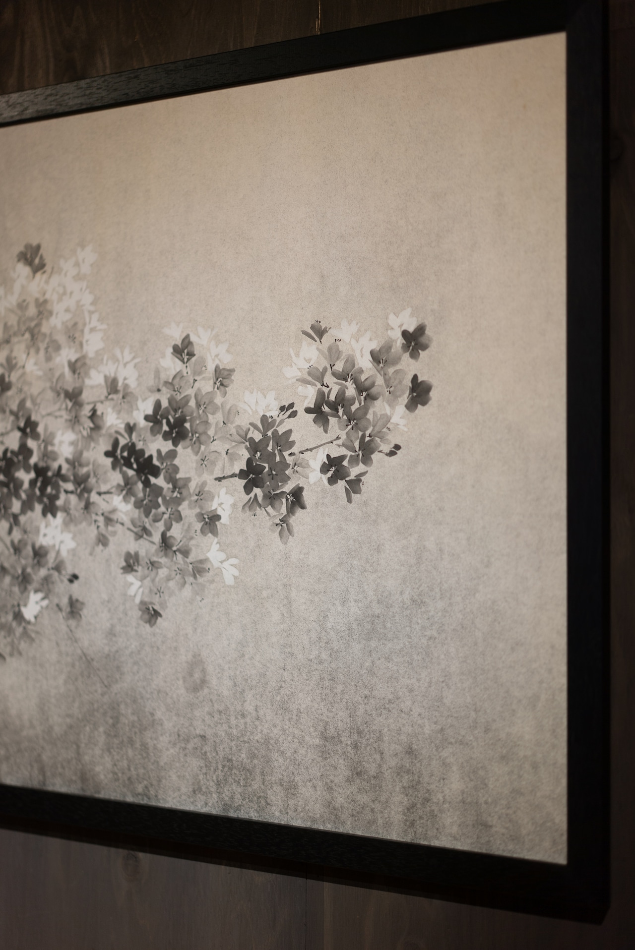 故郷岐阜に、樹齢1500年を超えるエドヒガンザクラの名木、淡墨桜(うすずみざくら)があり、物心つかない頃から、墨と桜という響きを連れ立って耳にしていました。墨で桜を描くということが、はじめから心のうちにあった気さえするのです。