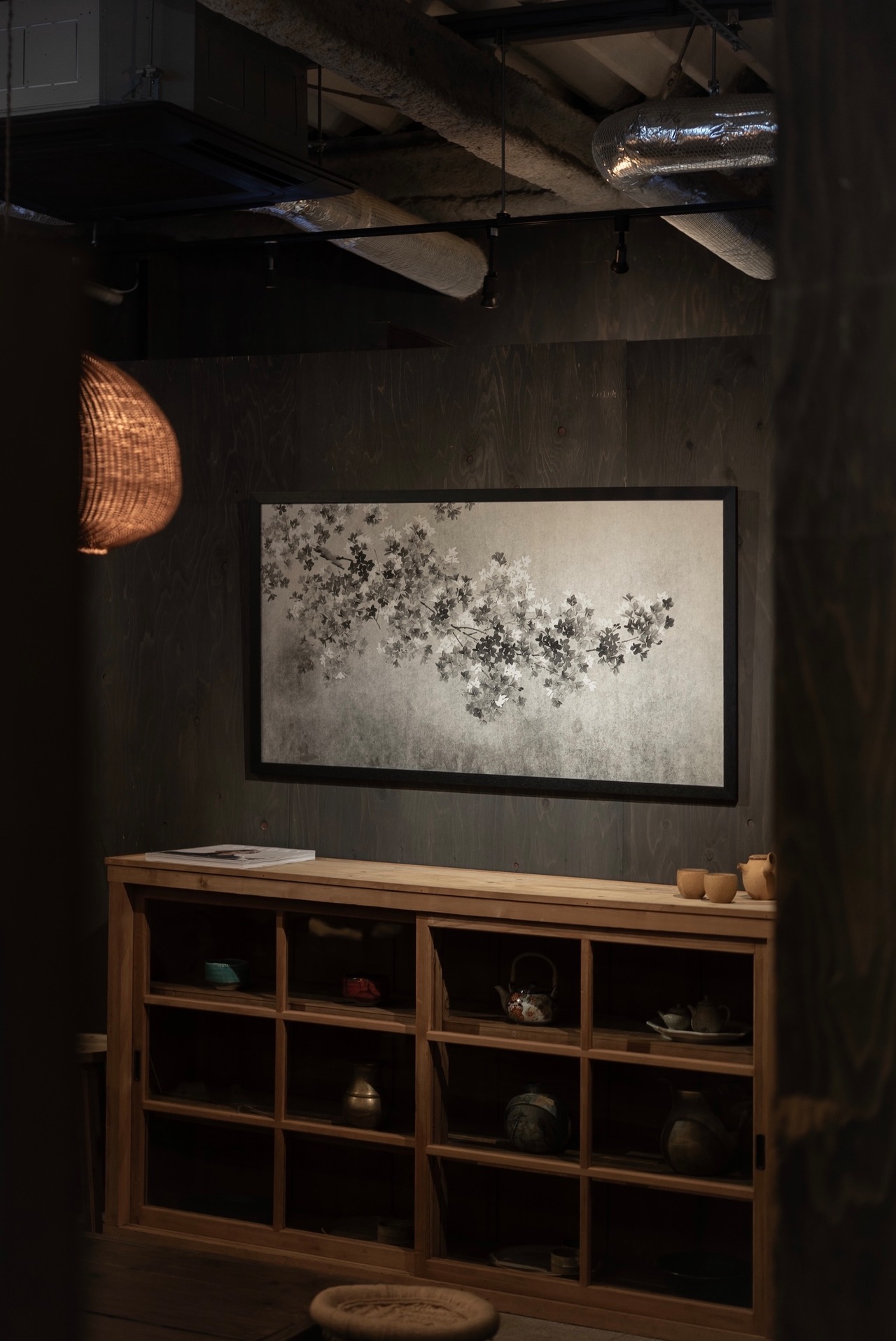 日本の春の象徴的存在である桜を墨色で描き「記憶の桜」への入り口として位置付けています。