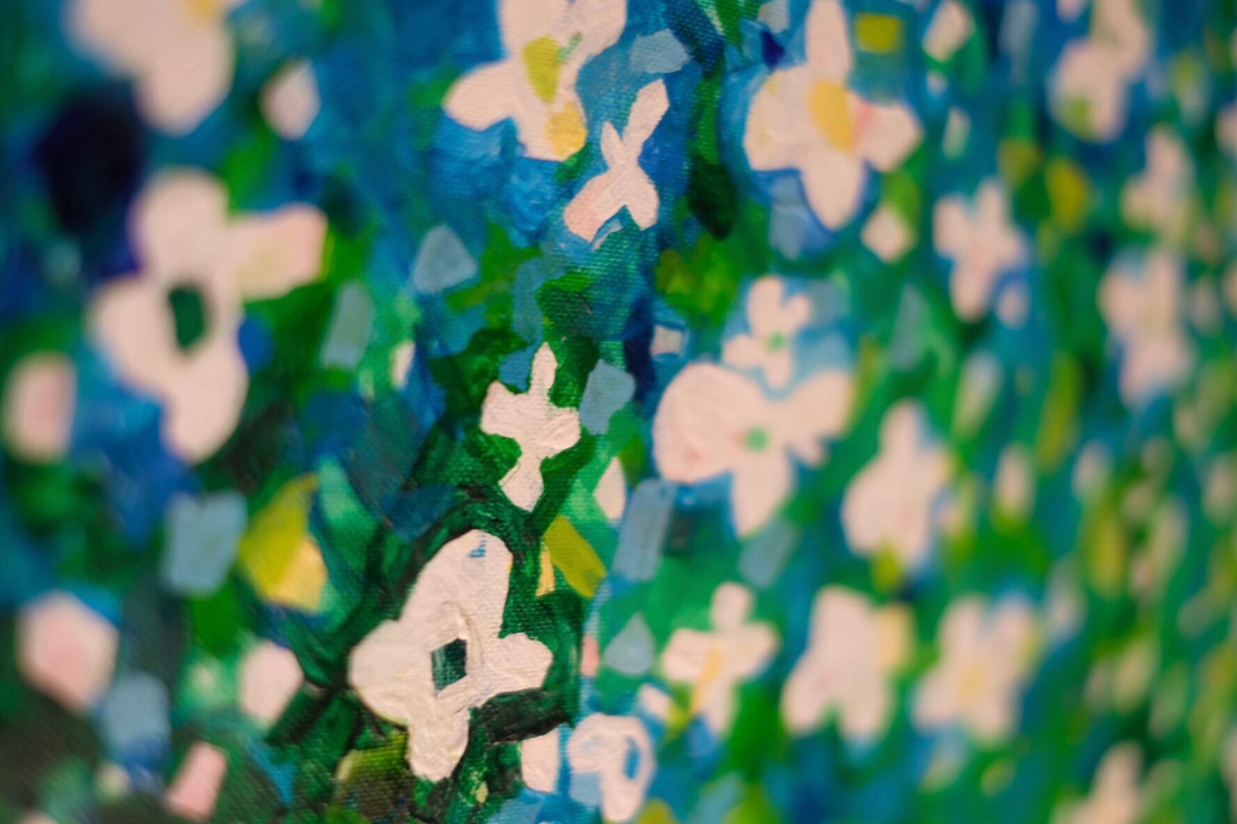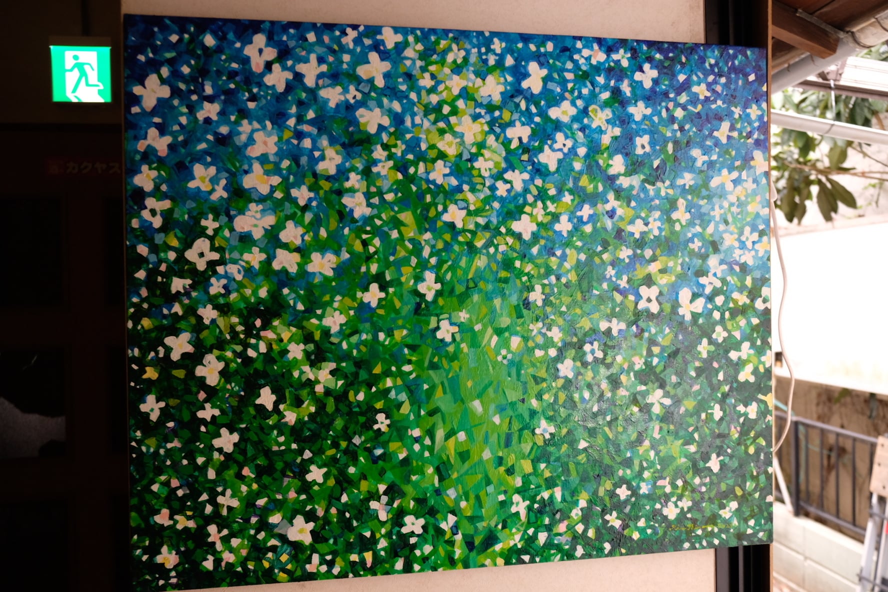 世界の中で自分の存在を問い続けるように、色を重ね、形を重ね、壊し、また立て直す…このプロセスは、まるで自然が内側から枝葉を伸ばし、咲き、枯れ、また芽吹く営みそのものであり、生そのものを映し出す呼吸のような循環なのだ。