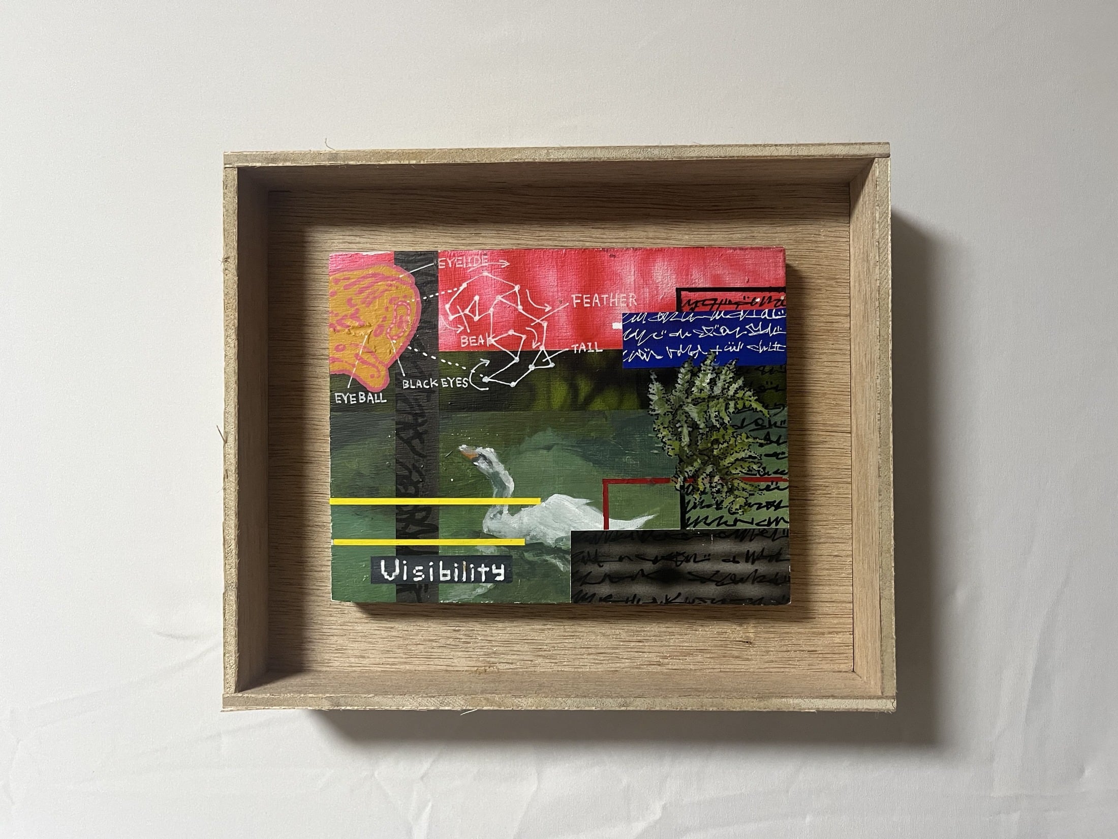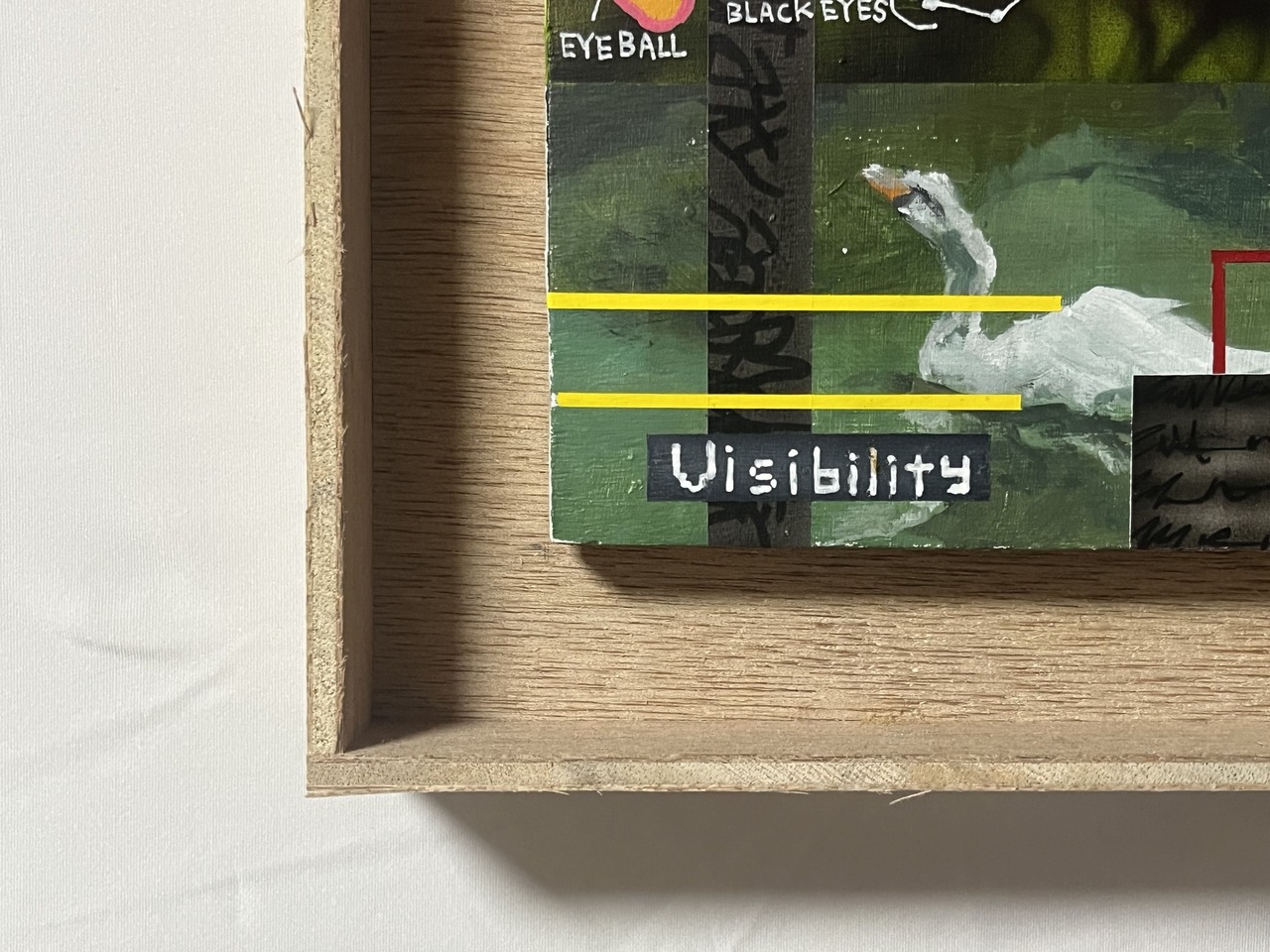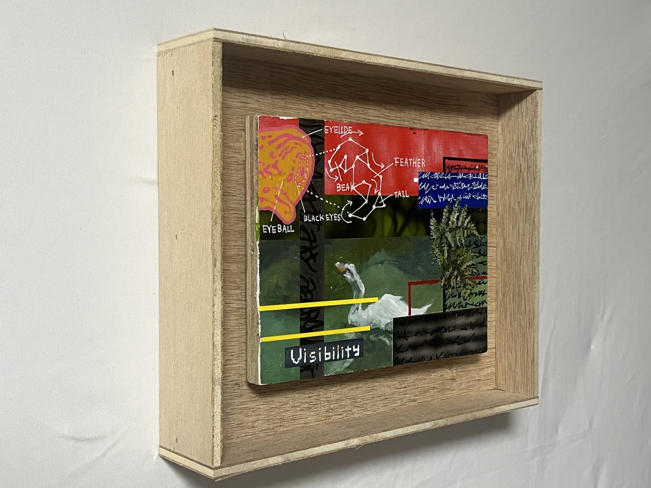 「レイヤー」と「センス」を主題に制作している。情報は多層的なレイヤーを通して深みを持つが、その過程で生じるノイズ=情報のずれがその一義性を曖昧にし、解釈の幅を与えると考える。作品を通じて、鑑賞者の視覚情報をあえて混濁させることで、彼らの知覚や判断に対する感性=「センス」を問いに付す。こちら側から提示する情報をあえて複雑化することで、選択することや再構成することに付き纏う「センス」を表現しようとしている。