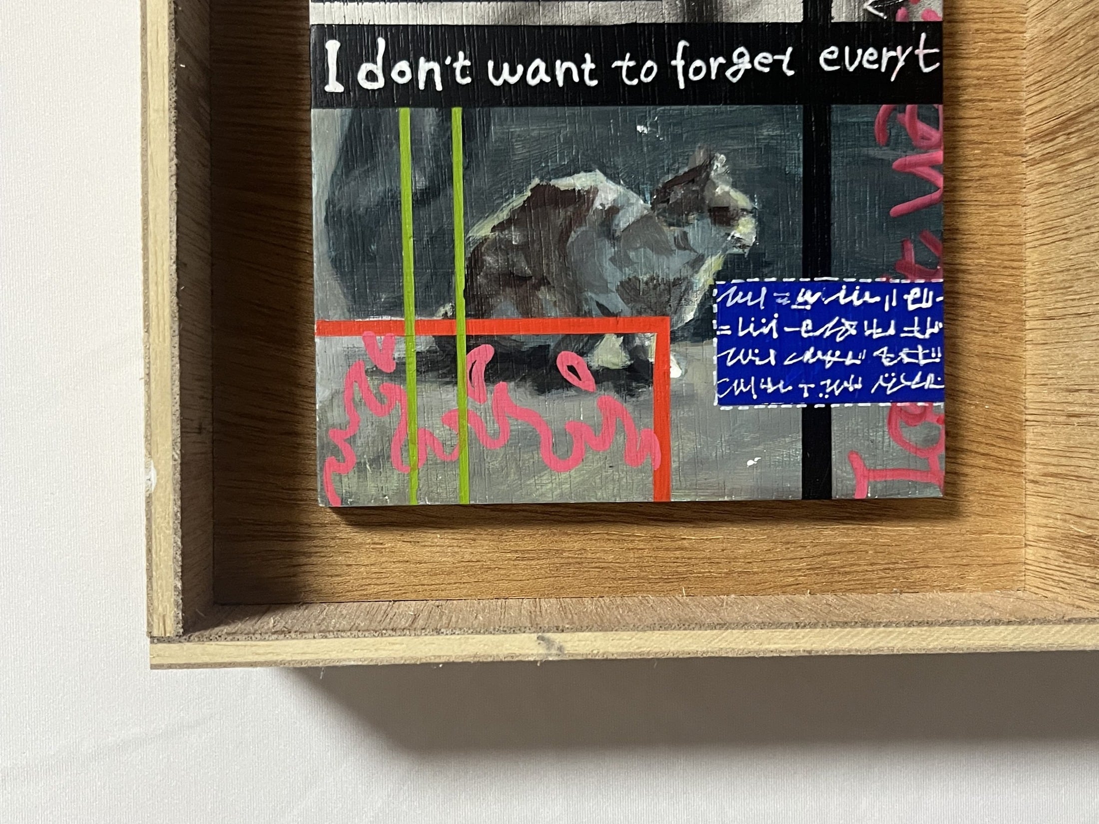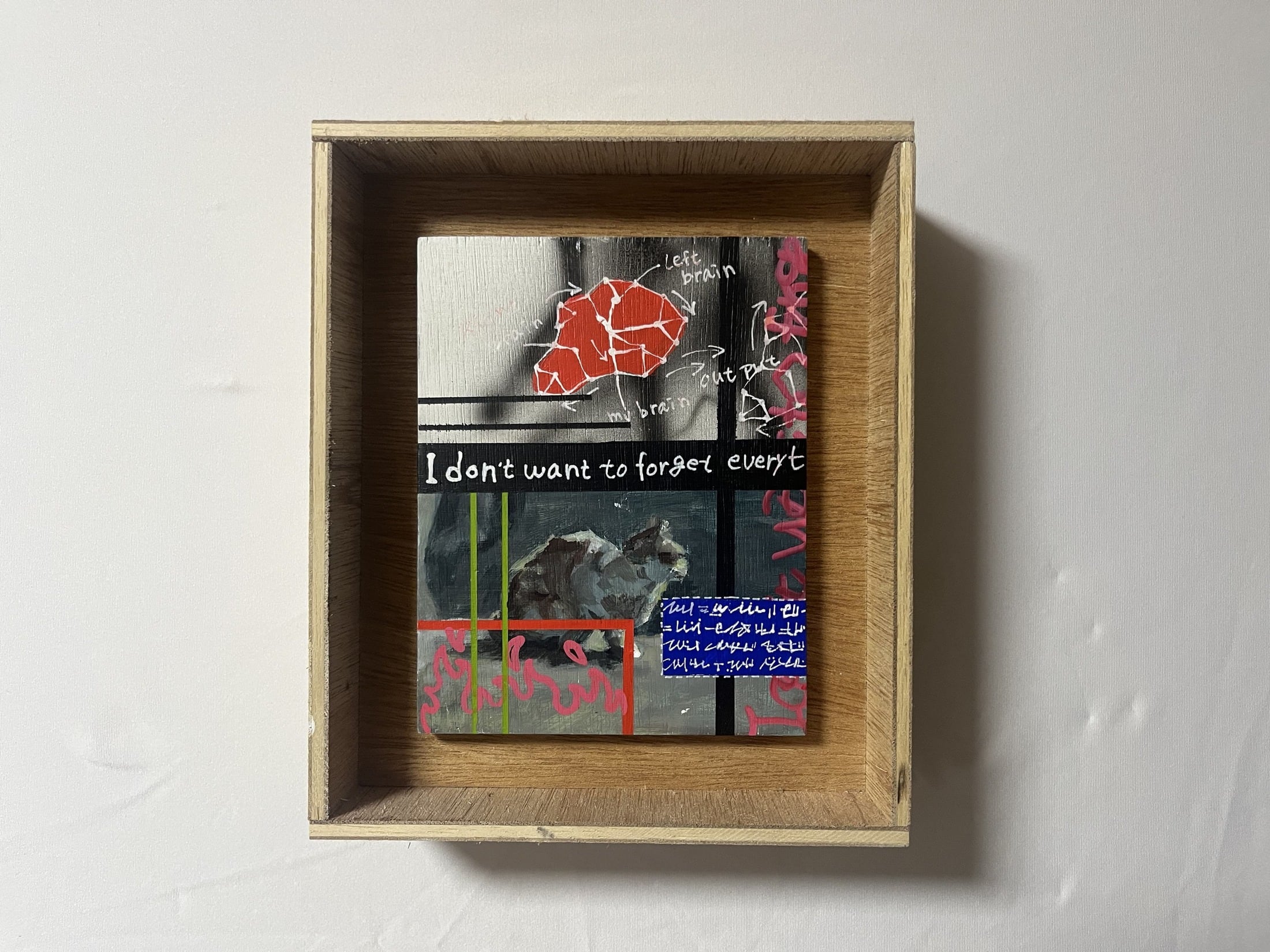 「レイヤー」と「センス」を主題に制作している。情報は多層的なレイヤーを通して深みを持つが、その過程で生じるノイズ=情報のずれがその一義性を曖昧にし、解釈の幅を与えると考える。作品を通じて、鑑賞者の視覚情報をあえて混濁させることで、彼らの知覚や判断に対する感性=「センス」を問いに付す。こちら側から提示する情報をあえて複雑化することで、選択することや再構成することに付き纏う「センス」を表現しようとしている。