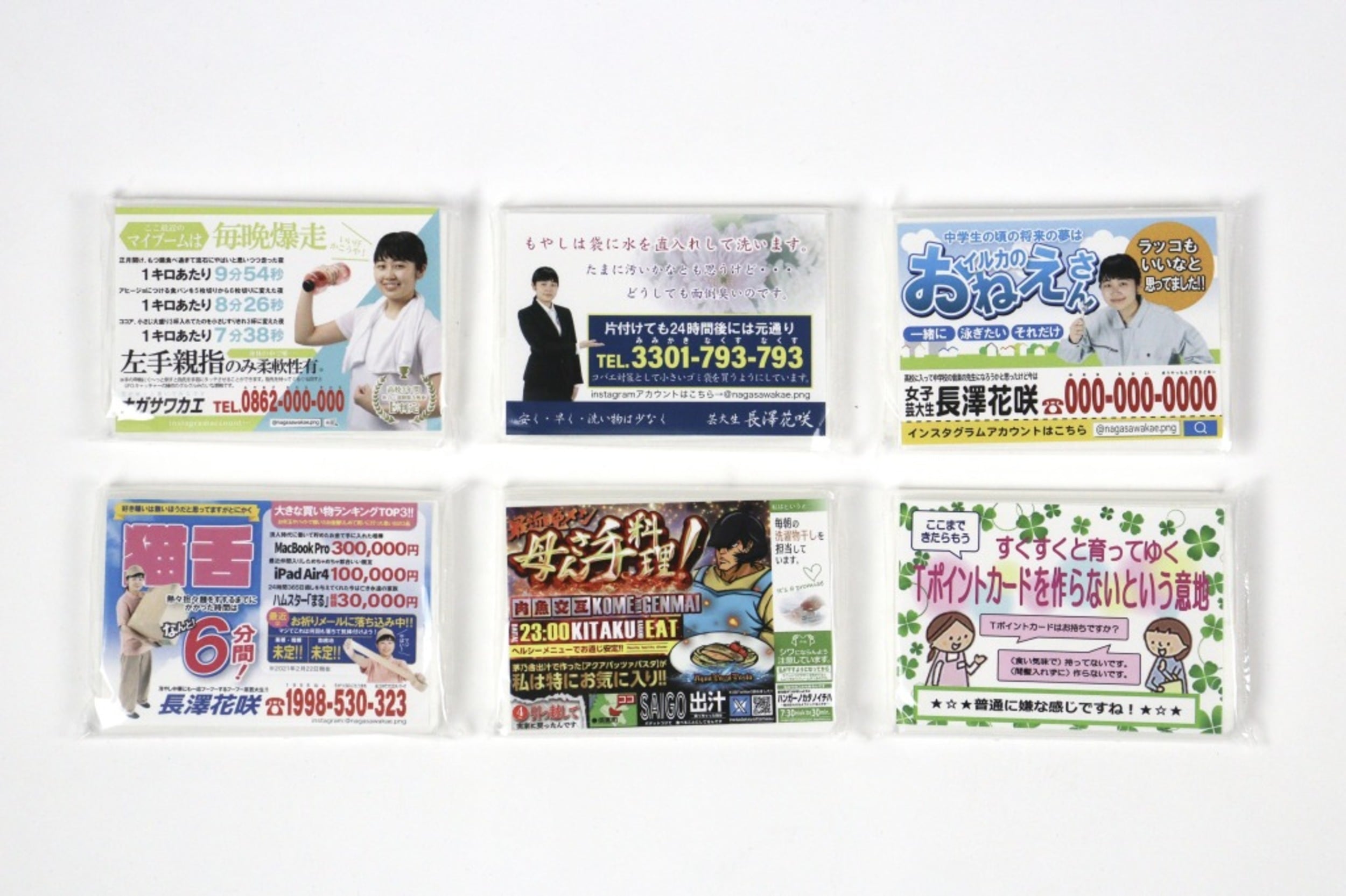 6種からなる100個のポケットティッシュです。ポケットティッシュとしての使用も可能です。(水には溶けません。)