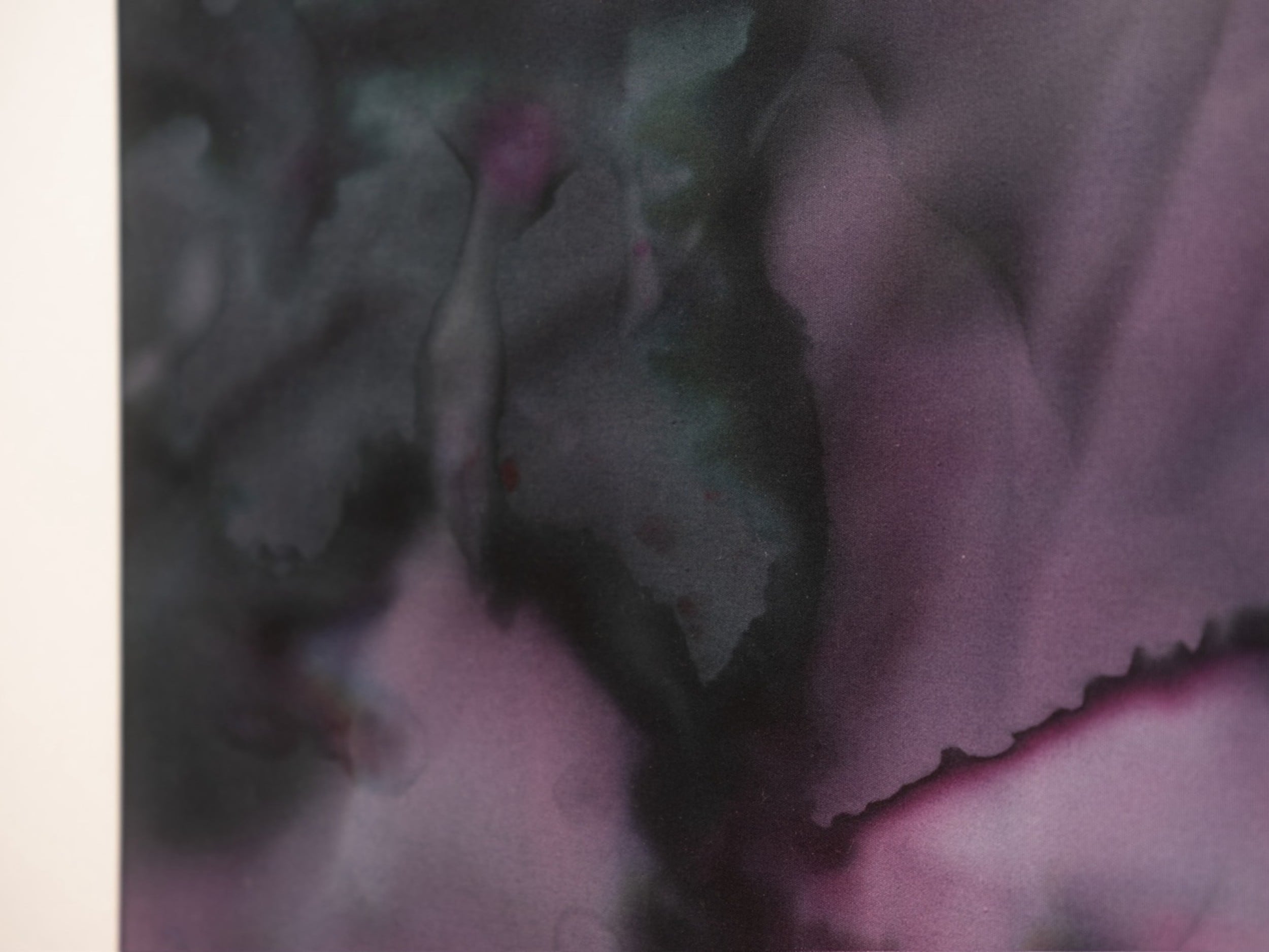 広田郁也は染料や絵具を間接的な描画方法で滲ませるという手法で制作を行ってきた。仕掛けを通じて自動的に色が広がっていく間接的な描画方法は、絵画表現における物語や形の記号的な表現を排除している。それは「染色」そのものであるともいえ、より近く的な効果をもたらしている。