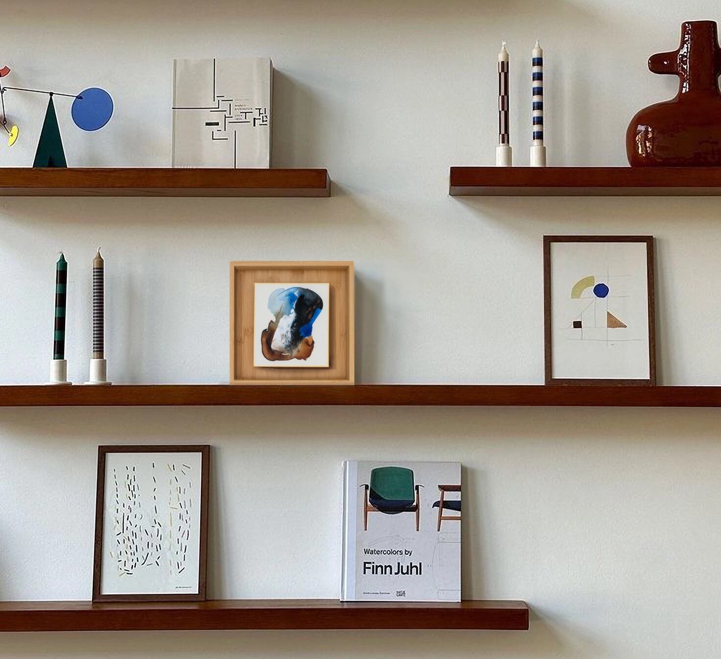 Media: Acrylic ink, chalk on shikishi board (framed in bamboo).
