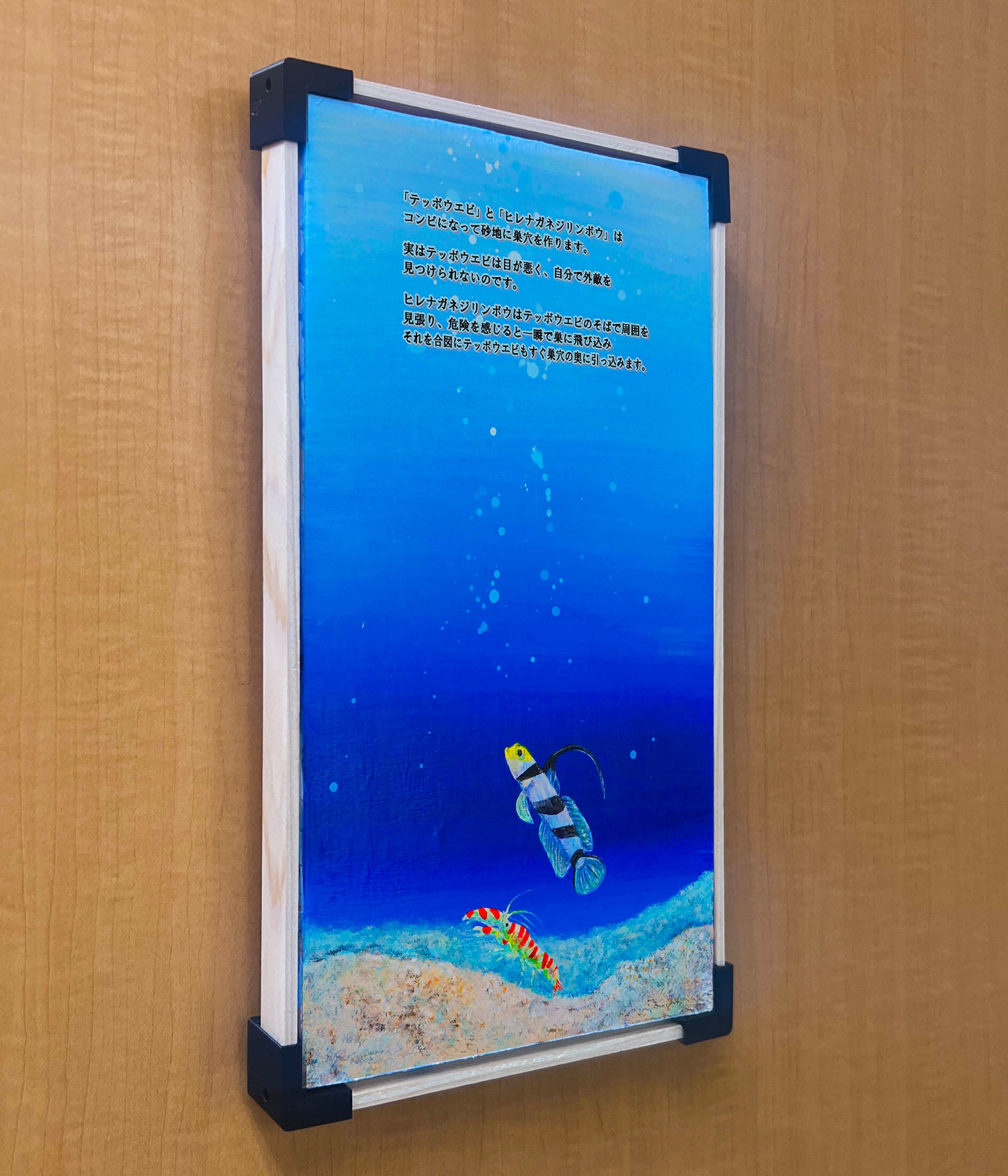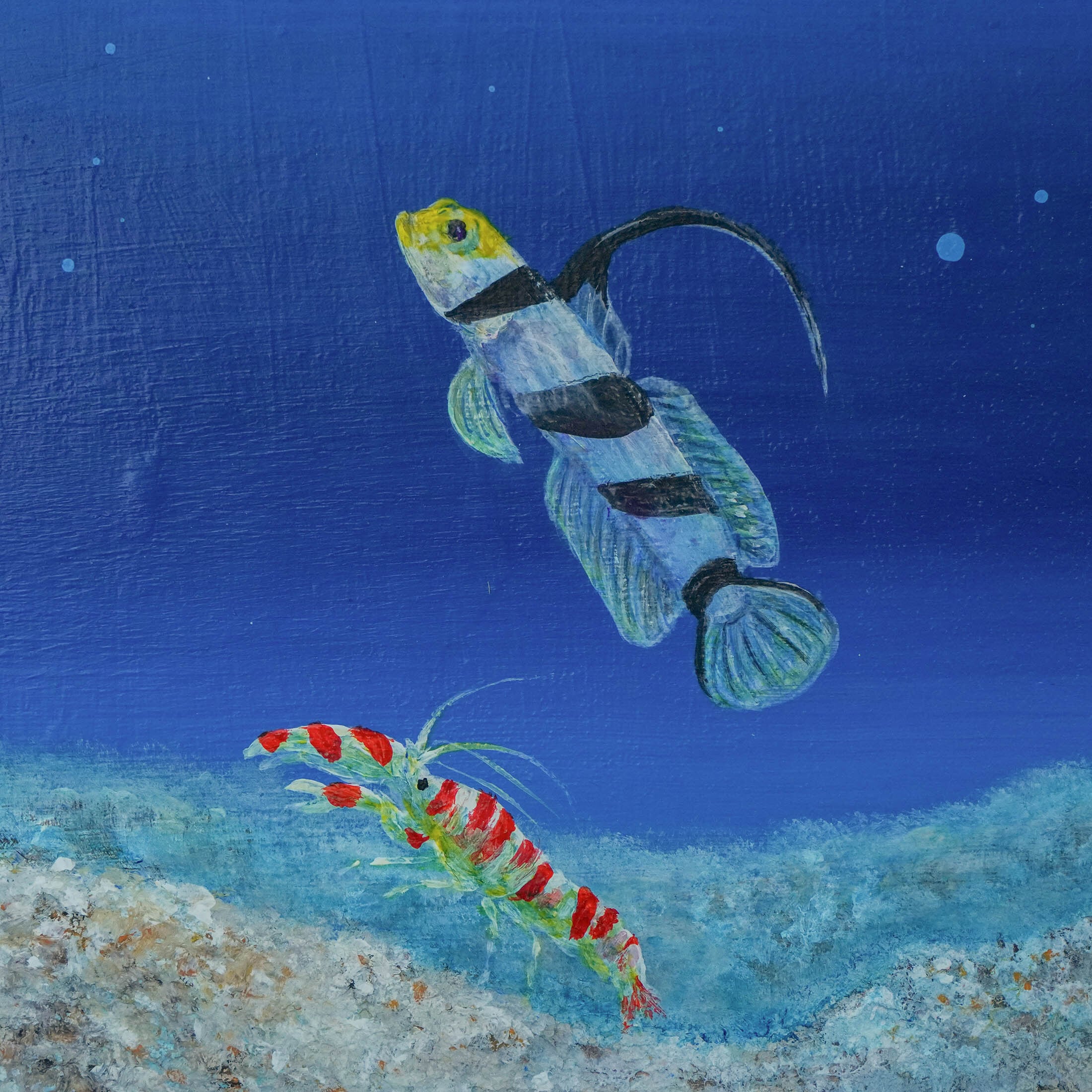 本作は海底の小さな魚とエビの寄り添い合う暮らしを描いています。ハゼとテッポウエビの共生はこの組み合わせ以外にもあり、どうやら彼らにも相性があるようです。