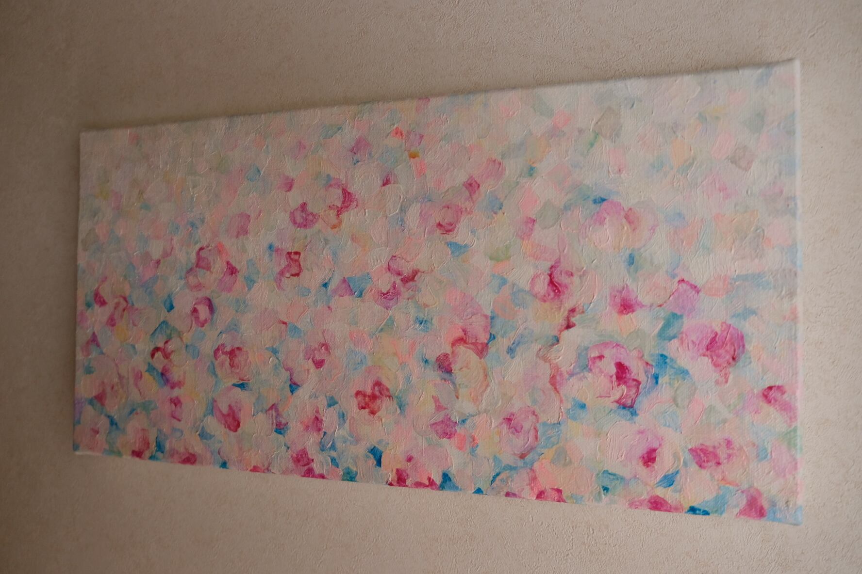 日々、苦楽共に受け止めながら、それらを抽象化し色を重ねた。そのうちに「天からの恵み」という言葉が思い浮かんだ。