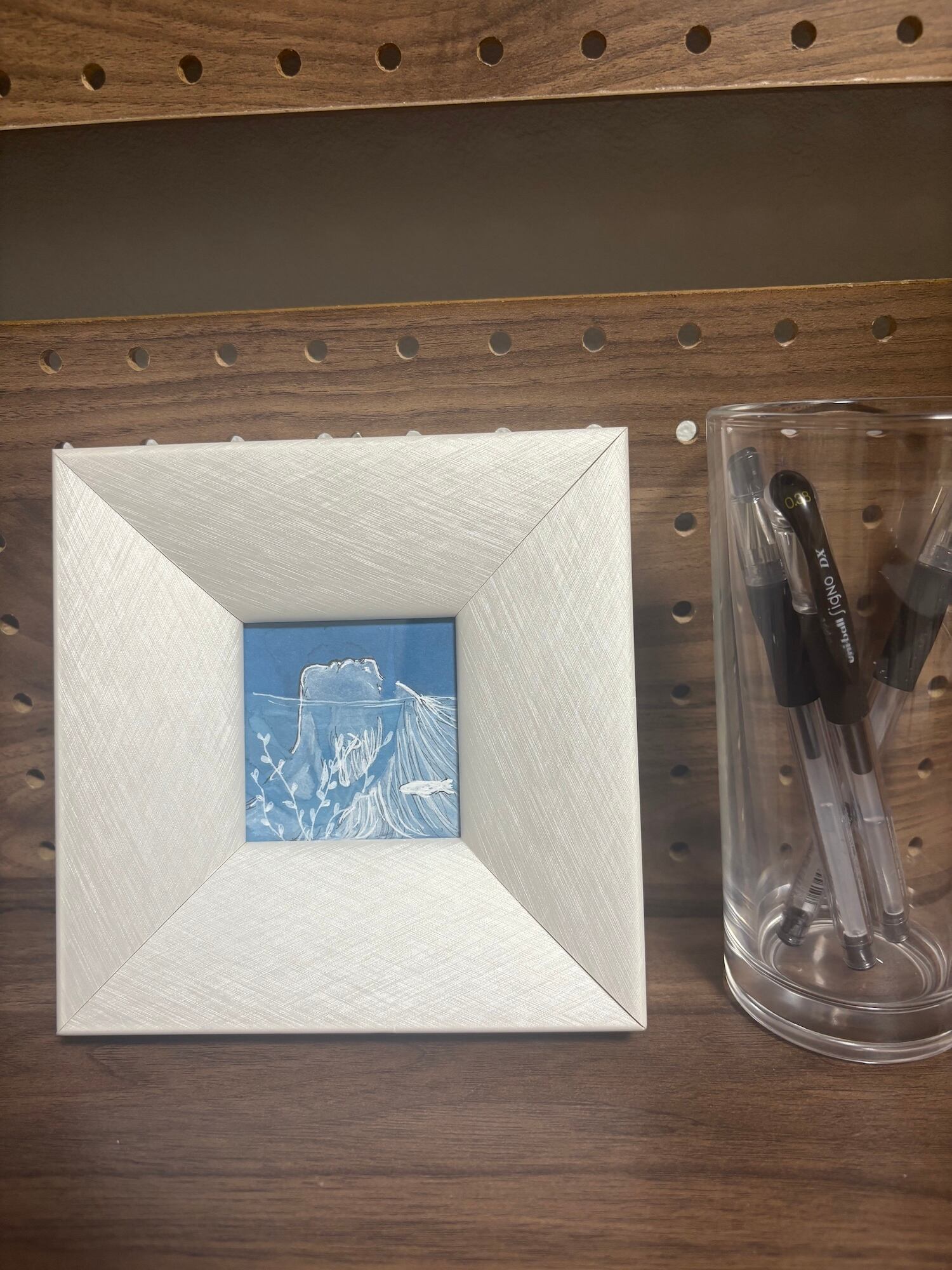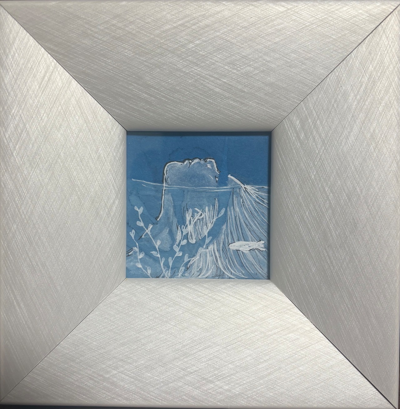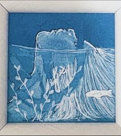 メディア:紙にサイアノタイプ、アクリル、ペン(Cyanotype, acrylic and pen on paper )