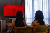 作品シリーズ「Ritual」の中の不気味な1枚。アーティストそのパートナーの先にあるのは経年劣化で焼き付いたテレビ。目をこらすと時刻や人物と思われる焼き付きが確認できます。