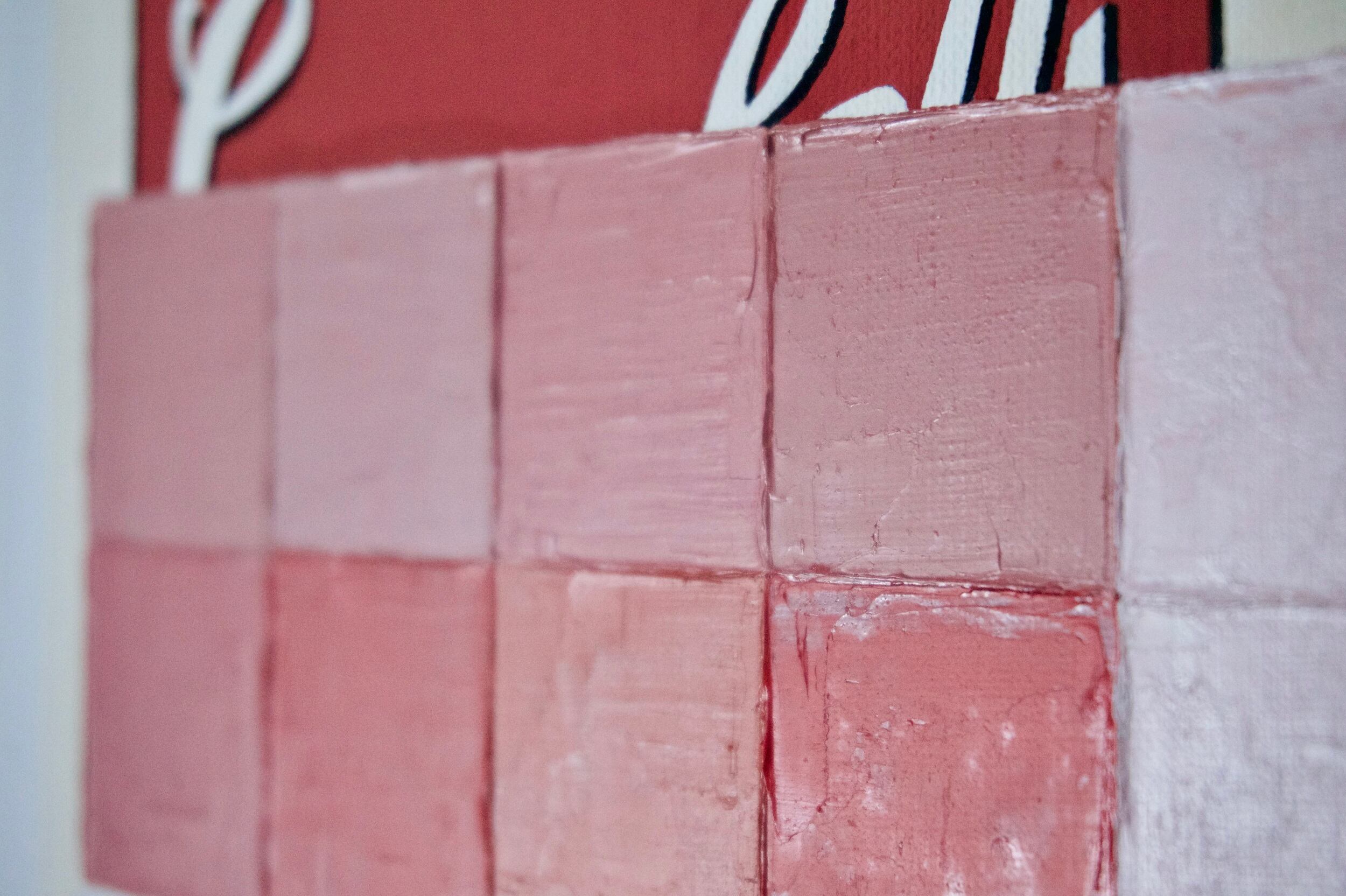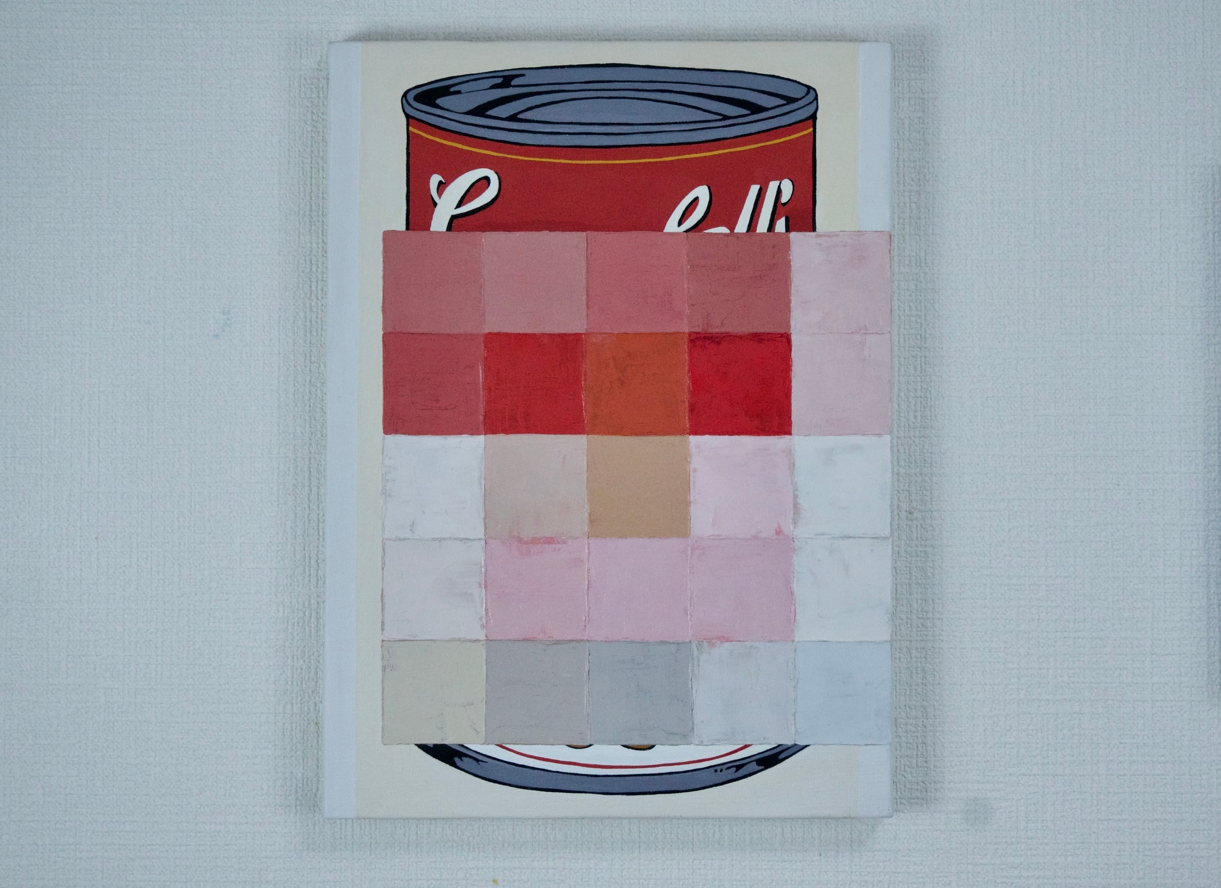 あまりに有名なスープ缶の一部分をピクセルモザイクに。この缶を知っている方はこのモザイク部分にも完成された絵を見てしまうことでしょう。しかしあなたが実際に見ているのはただの四角形です。目の前にある視覚的情報と、あなたの脳が見ようとしているものは違っているかもしれないということを可視化した作品です。