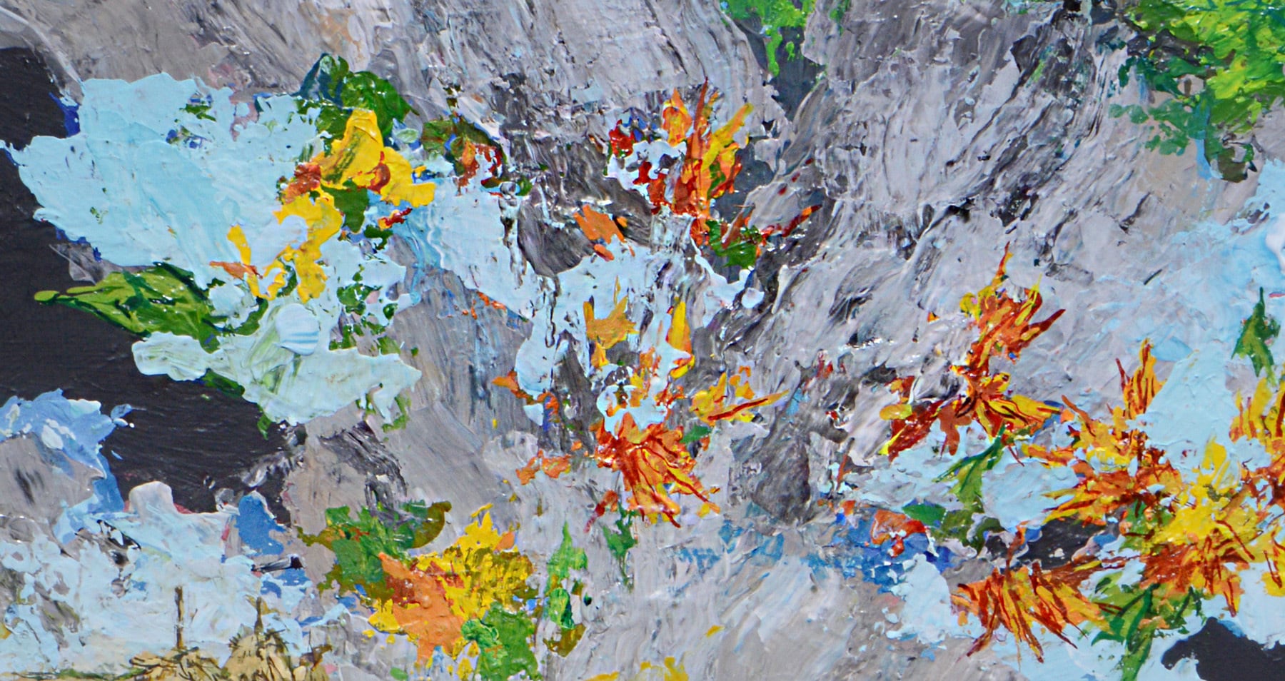 私は山形県で生まれ、山形県で育ちました。わが県を代表する河川が最上川で、「母なる川」と呼ばれています。江戸時代、最上川舟運によって山形と上方(大阪)がつながり、流域に文化と富をもたらしました。その象徴の1つが、この作品に描かれている紅花です。しかし最上川は同時に水害をもたらす存在でもあり、毎年のように氾濫を繰り返しています。先人は洪水のたびに土地を耕し直し、またそこに暮らしを築いてきました。