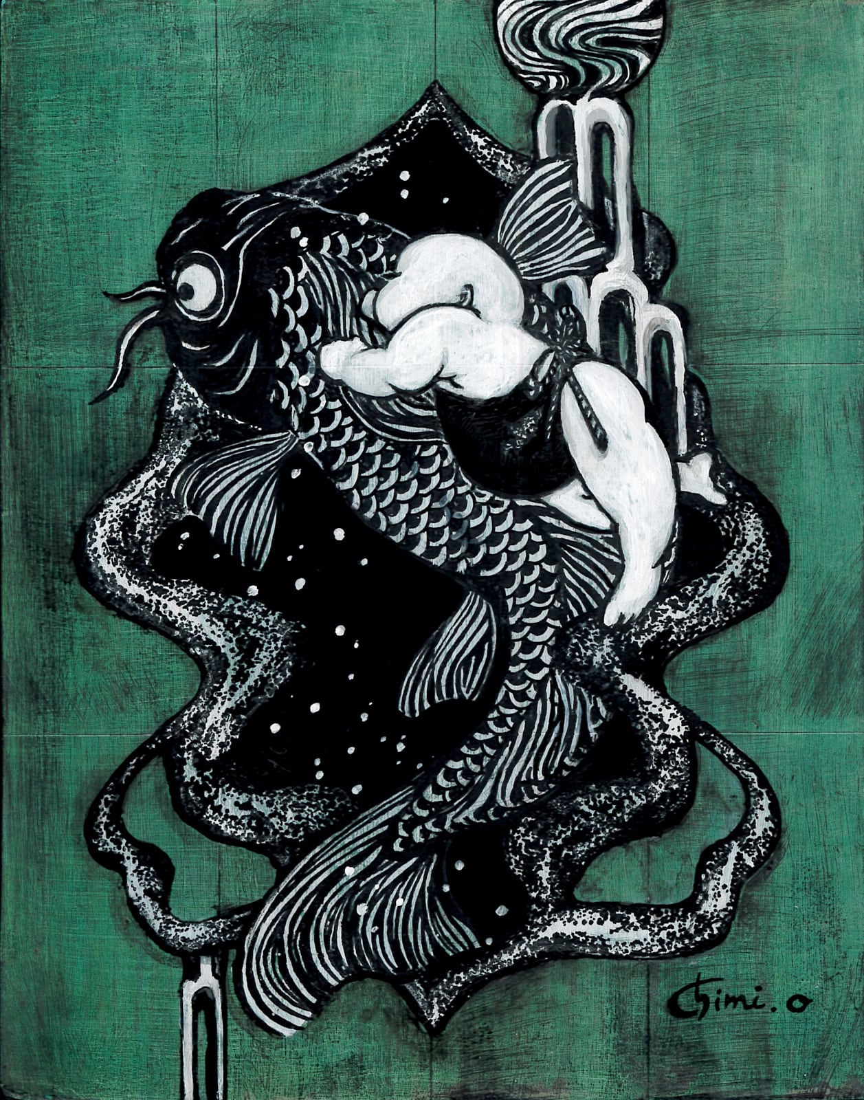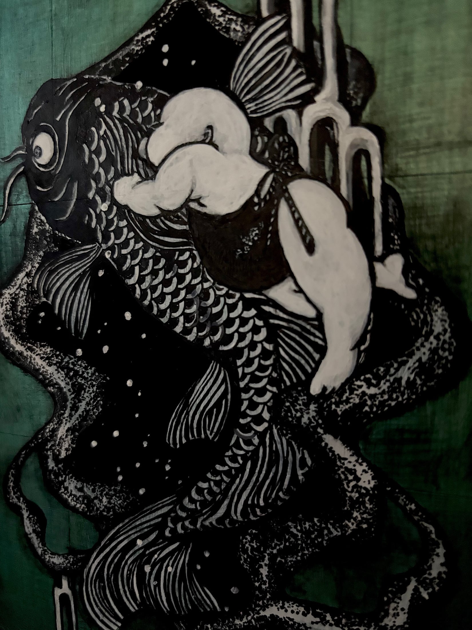 「金太郎と山姥」と対になっており、こちらは“動”を意識して描きました。」(緒方智奈美)
