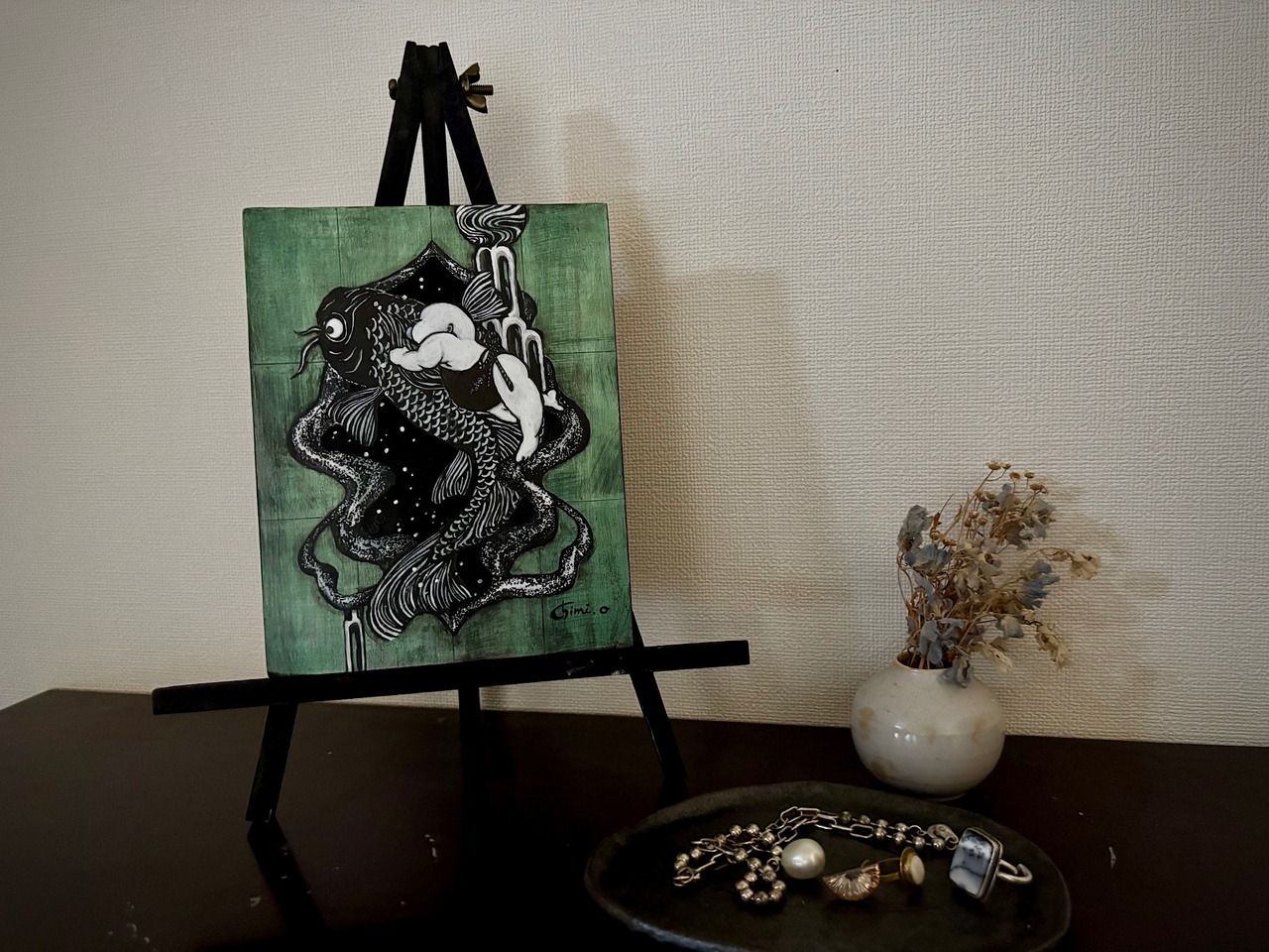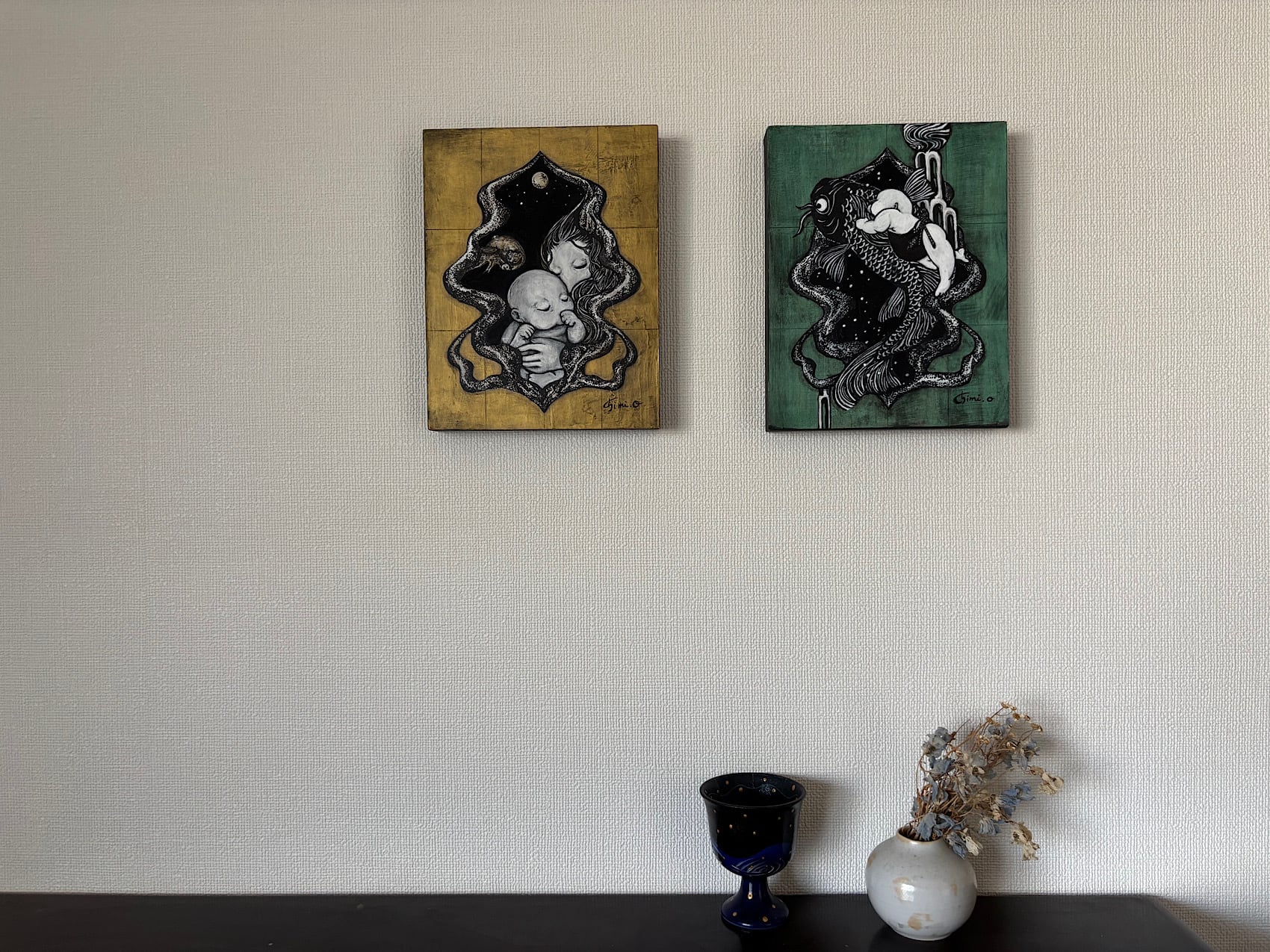 メディア:ペン・アクリル絵具/ケント紙・木製パネル