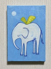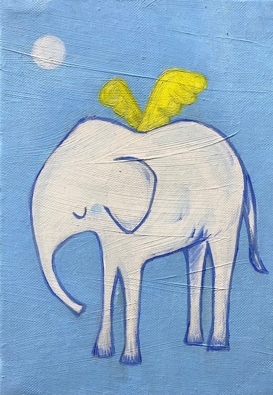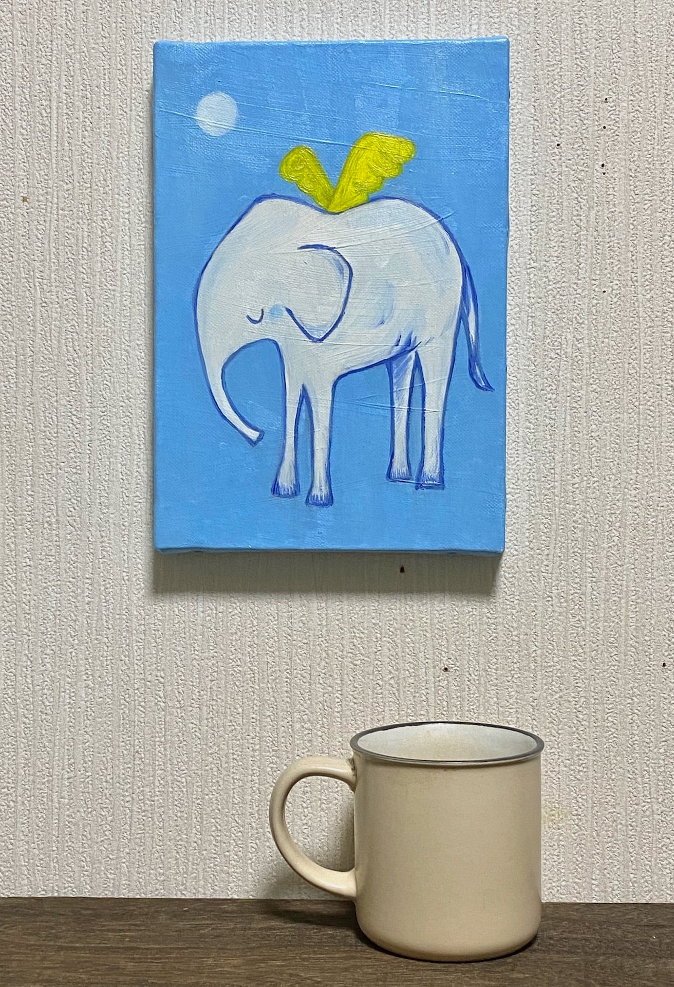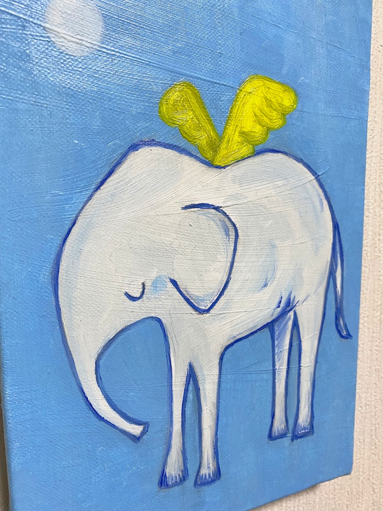「悲しみの羽根を生やした孤独な白いゾウを描いた作品。」(松崎大輔)