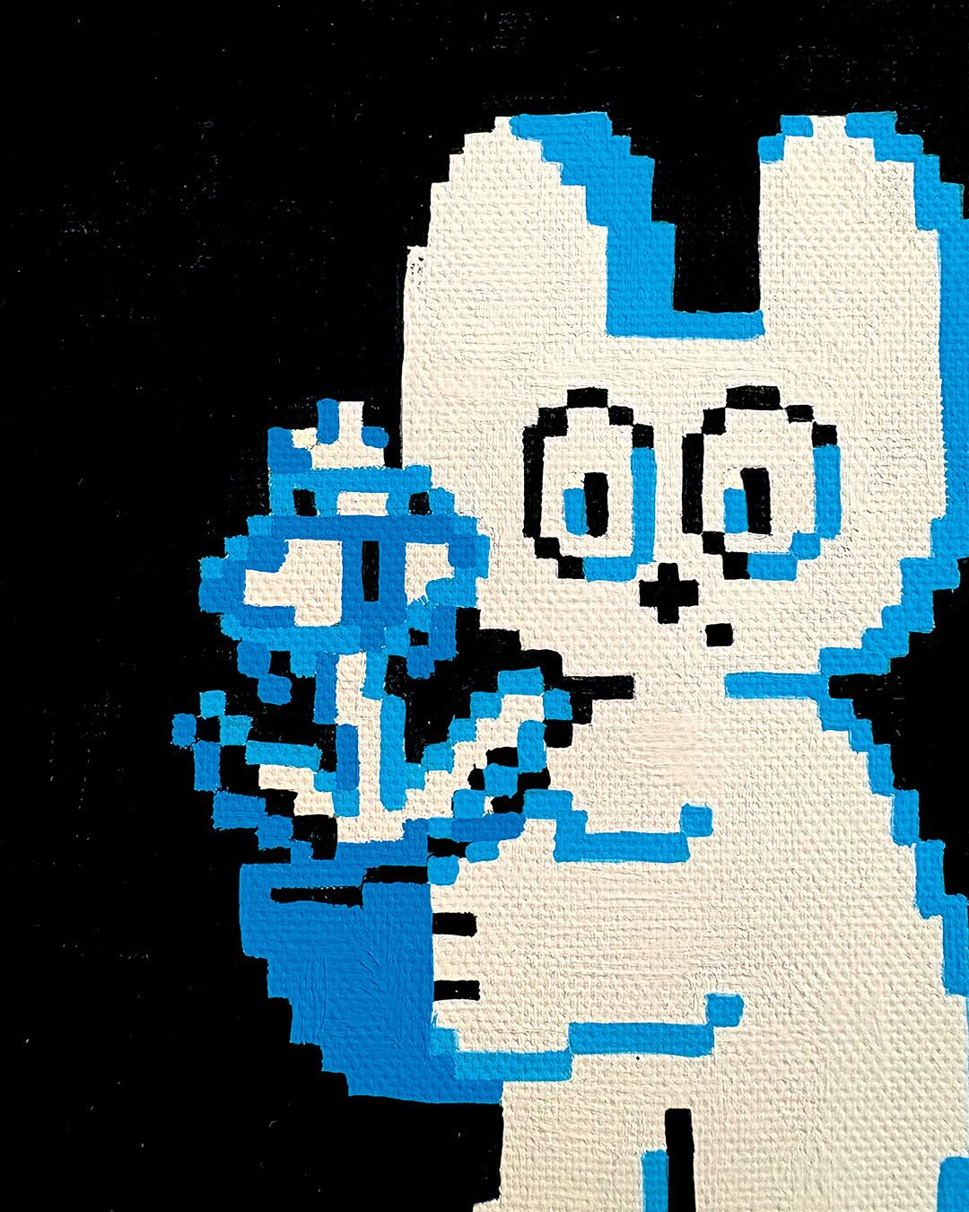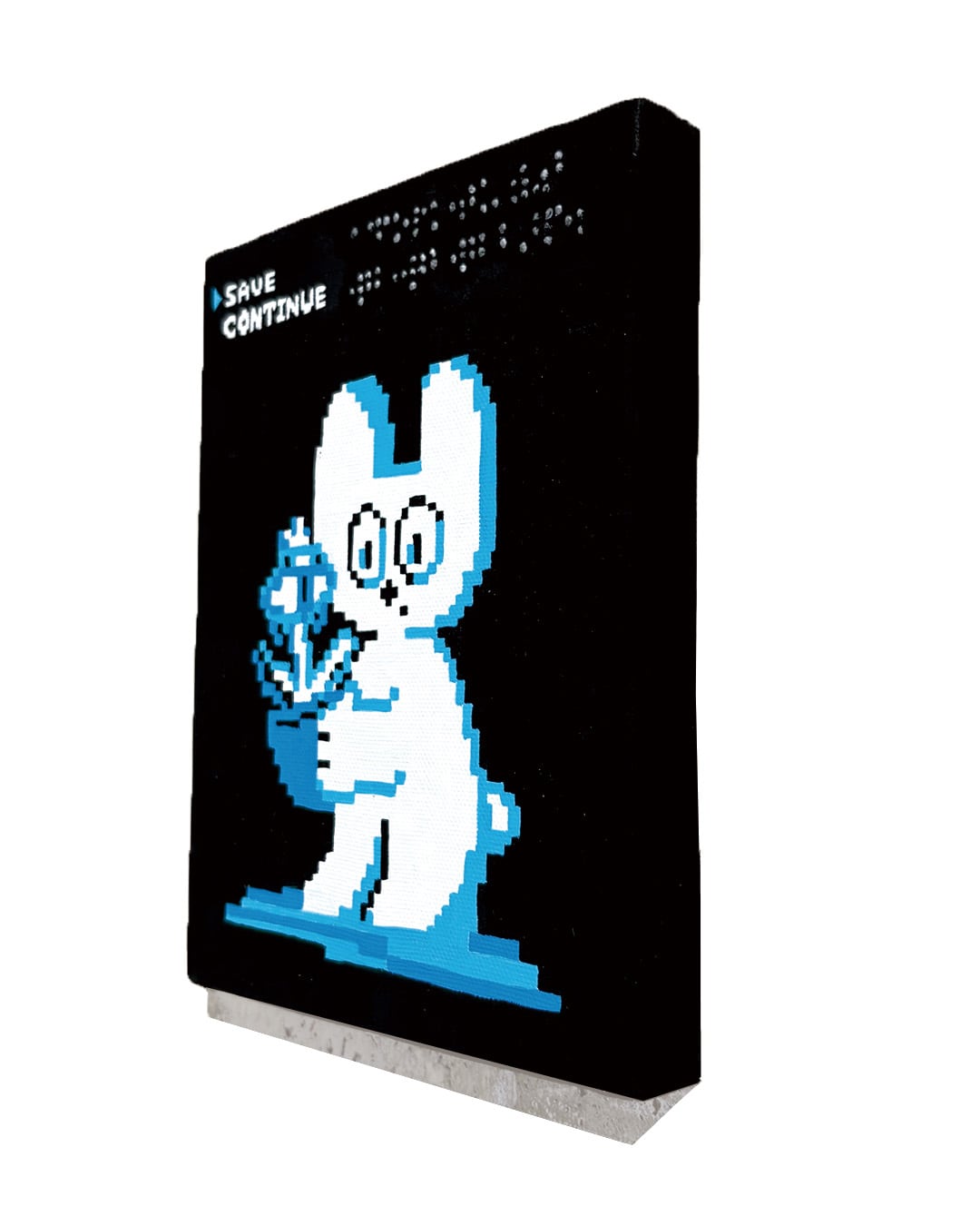 この作品には点字を表現の一部として使用しております。私が生まれつき目に問題を抱えていることもあり、以前から点字に興味を持っていたことと、しゃべることができないポセミンが様々な方法で意思疎通を試みるように、簡単には伝わらないが、理解しようと一歩生み出すと読むことができる、そんな状況をこの文字を使って表現してみようと思いました。