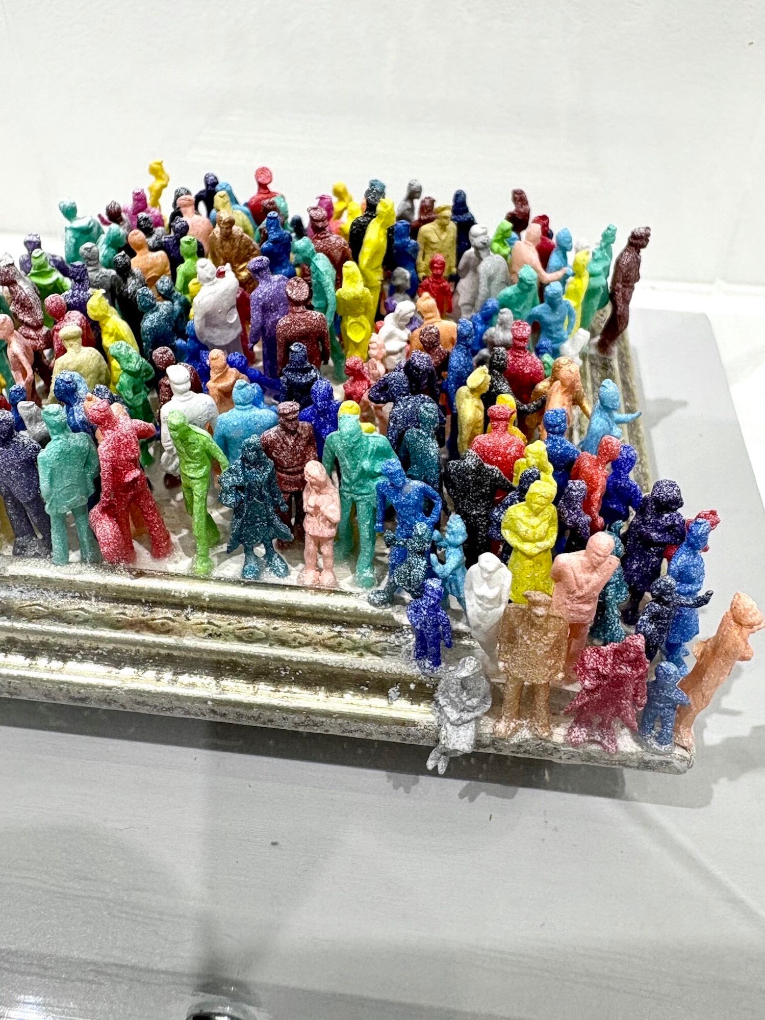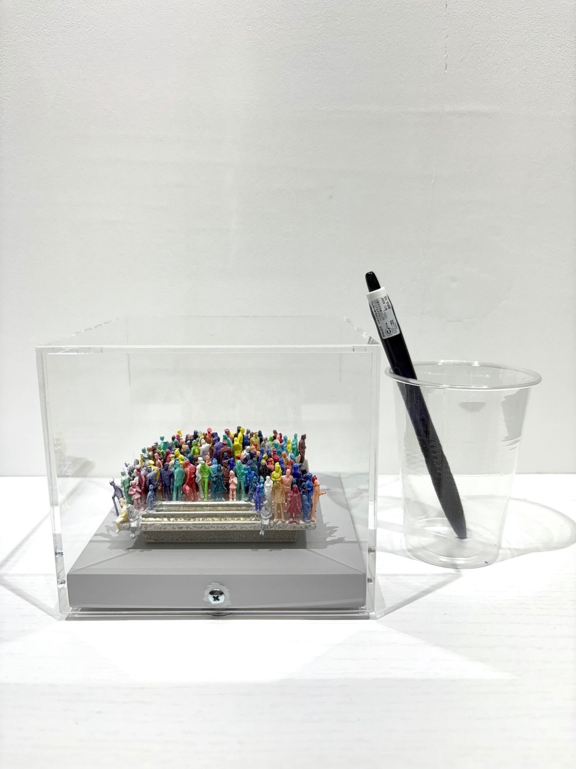 カラフルな人々が枠から湧き出すような姿によって、個々が自由を求めていくエネルギーを表現している。