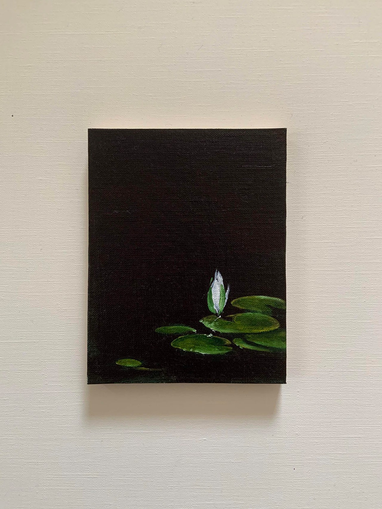 「木製パネルに麻布を糊付けした支持体に仕上げています。