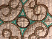 こちらのタペストリーは森と湖と海、宇宙をモレウシク(渦巻きと神の目紋様)で表現した作品になります。