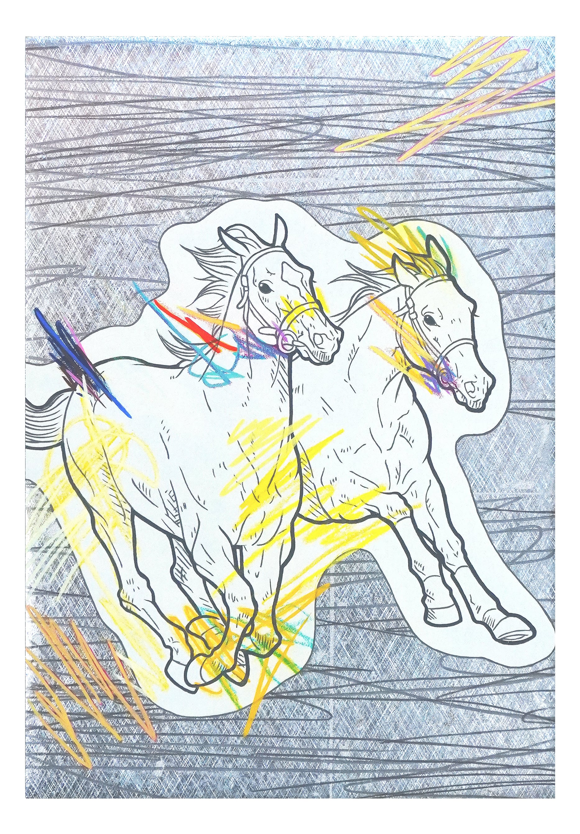田中武「「白い馬②」(ぬりえシリーズ)」【広野町にて手渡しまたは送料着払いのみ】