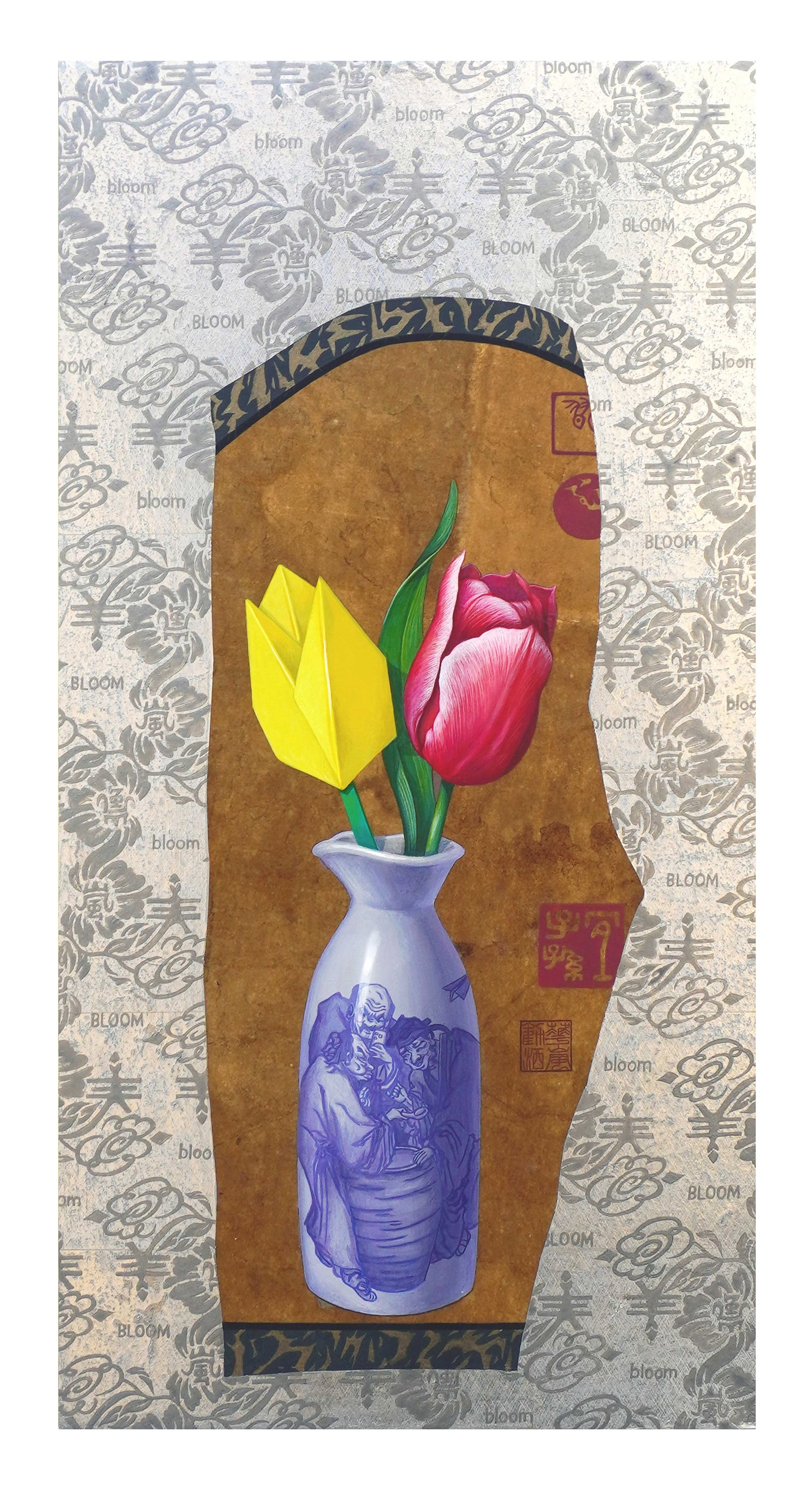 紙、プラチナ箔、特殊フィルム、アクリル絵具