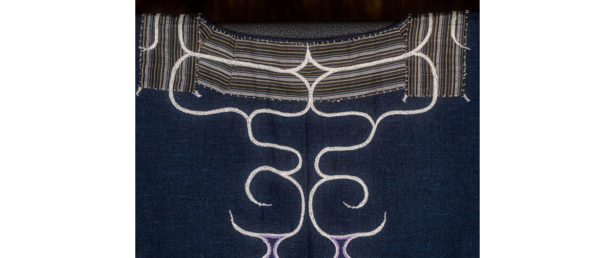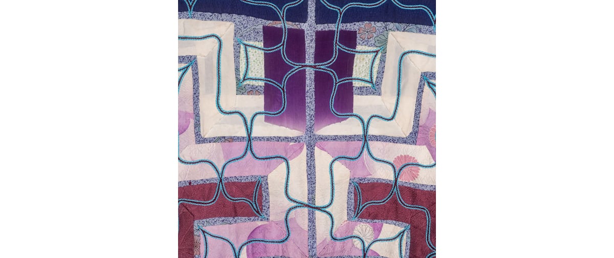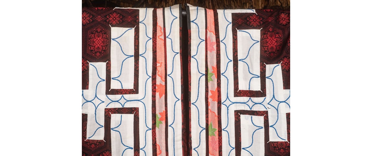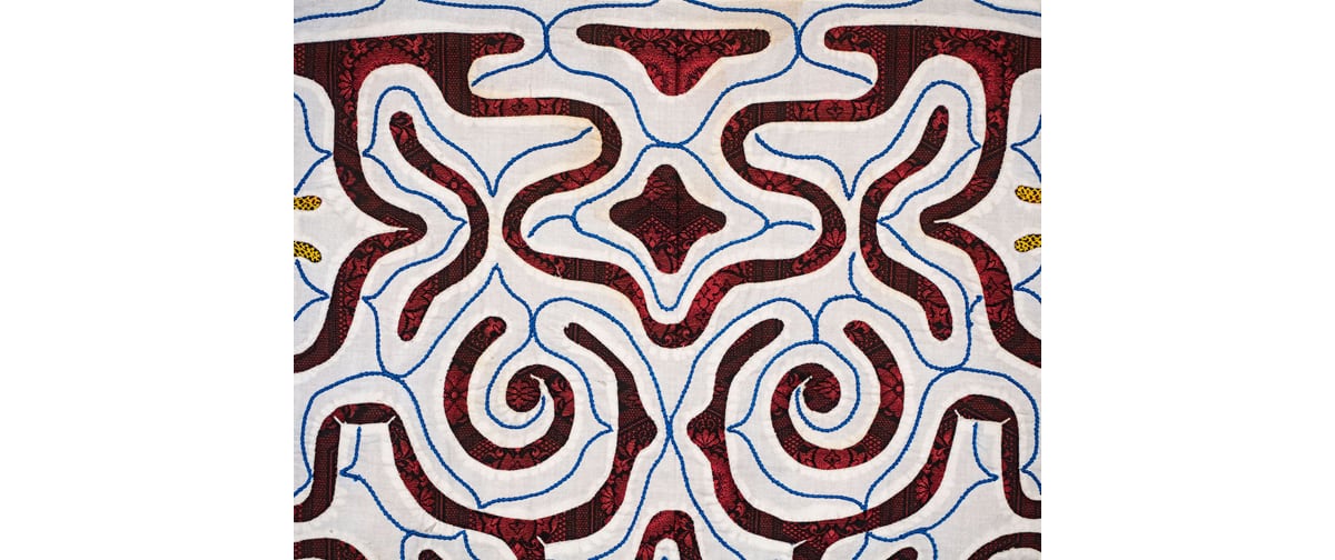 メディア:木綿テキスタイル、切り伏せ刺繍、刺繍糸