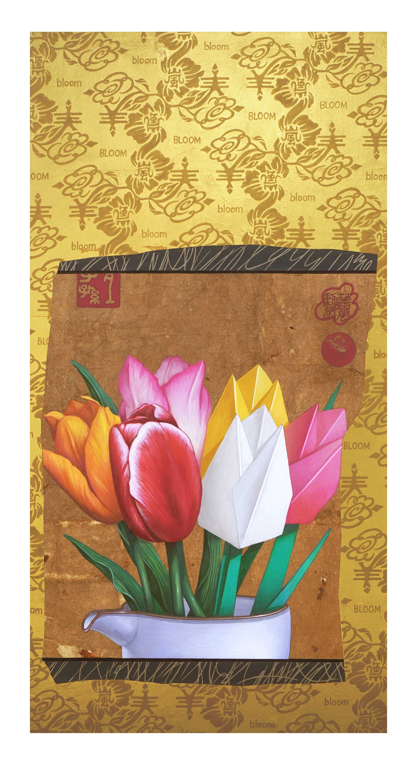 紙、純金箔、アクリル絵具