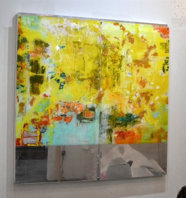 使用しているアクリル板は、新型コロナウイルス感染症対策のパーテーションとして使われていたものです。 コロナ禍という痕跡を持つ素材に新たな価値を与え、時代を記憶する作品として制作しているシリーズの作品です。 この作品は、絵具の透明度をコントロールしながら、背後にうつる絵具の影を意識した作品になっており、明るい色彩を用いているので、自身のポートフォリオの表紙イメージとして使用している作品です。 メディア:アクリル板(リサイクル)にアクリル絵具ほか サイズ:タテ1167mm ヨコ1167mm 厚み55mm オガワミチ先生 公式ウェブサイト: https://michiogawa.art/jp インスタグラム:https://www.instagram.com/kazikaeru 【重要】本作品は12/6の午後以降に広野中央体育館の会場での手渡し、または12/7以降に着払いでの発送となります。